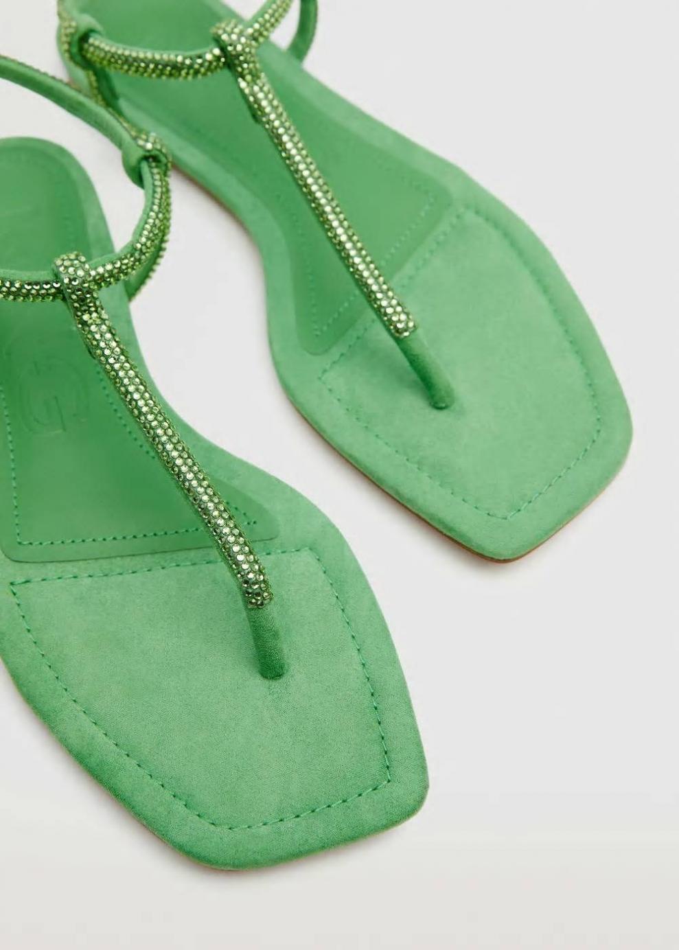 Mujer Sandalia strass tiras Verde | Zapatos Mango