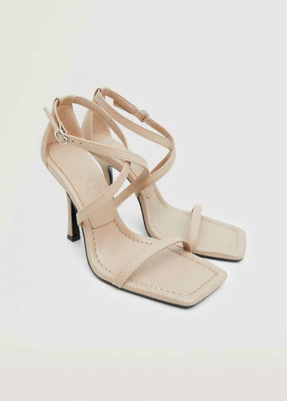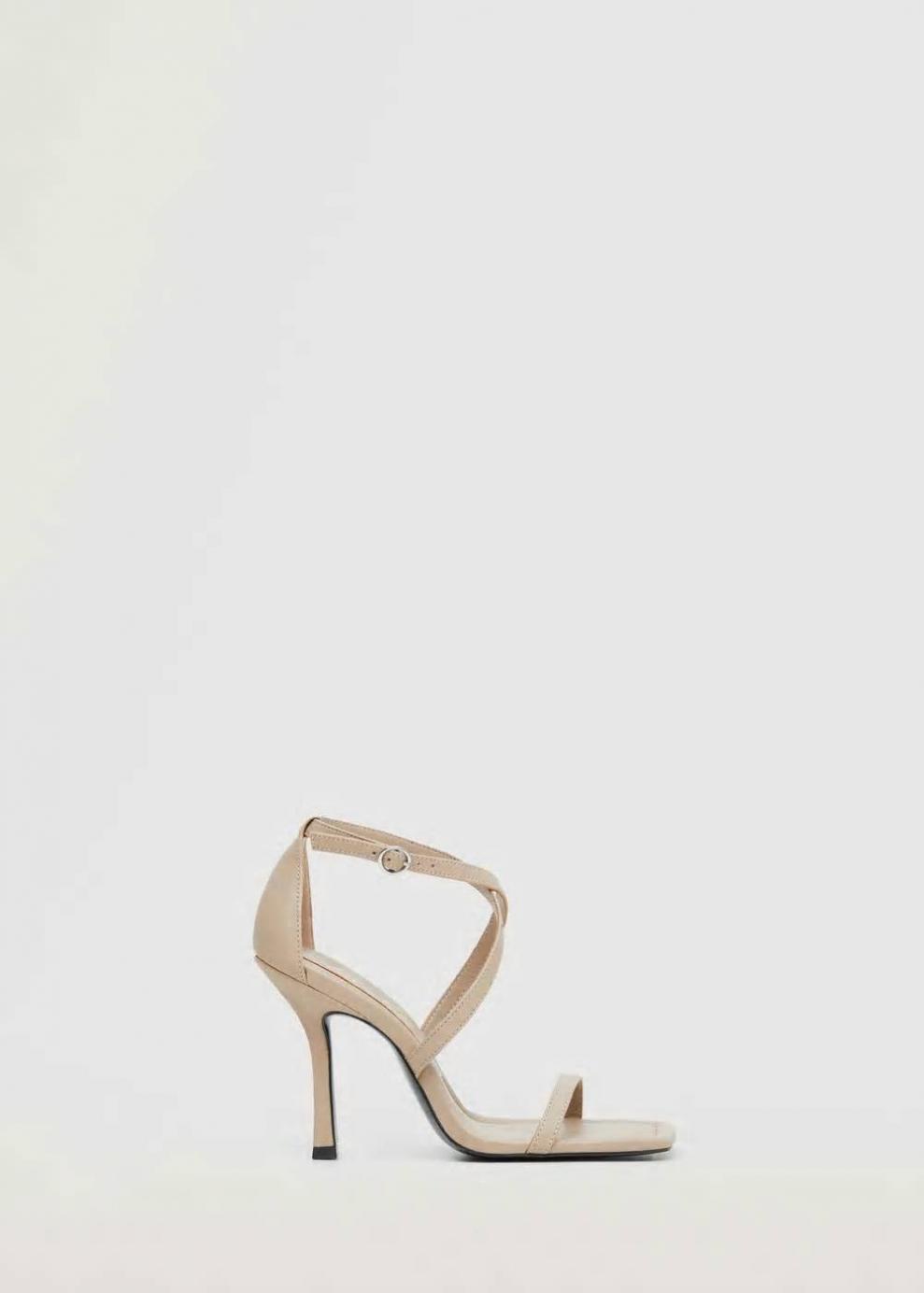 Diseño de tiras 8 cm Punta cuadrada Tacón de aguja Pulsera en el tobillo Cierre de hebilla El tacón mide 10 cm Colección fiesta y ceremonia