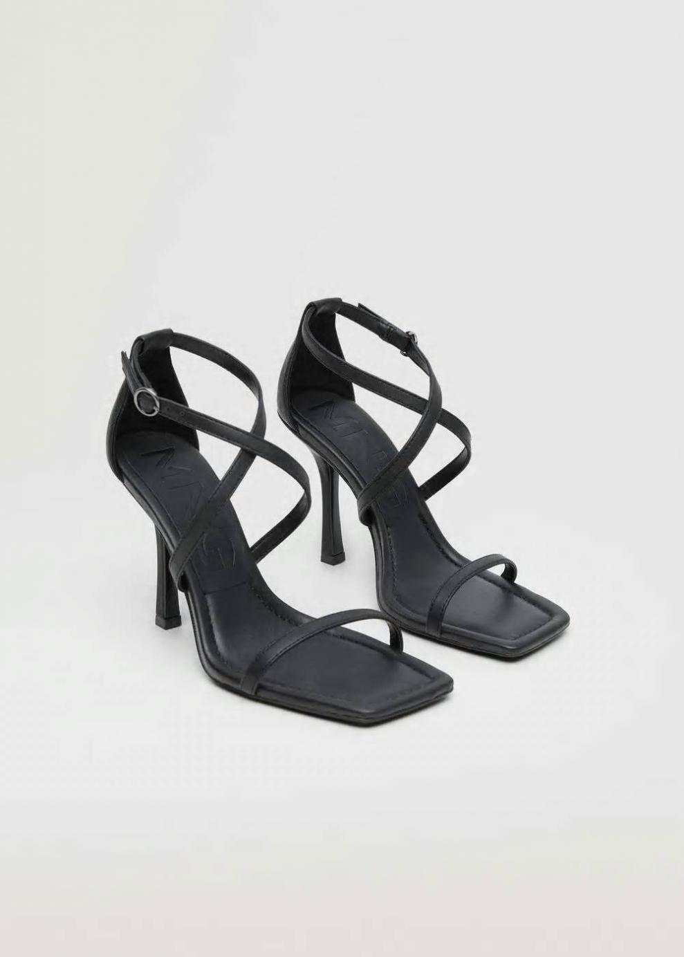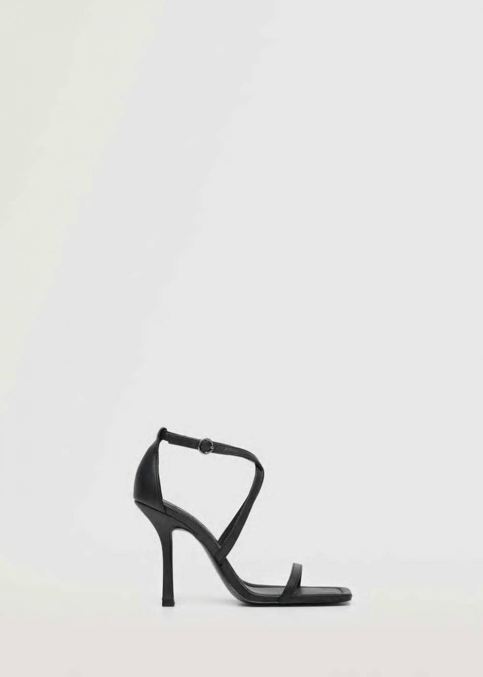 Diseño de tiras 8 cm Punta cuadrada Tacón de aguja Pulsera en el tobillo Cierre de hebilla El tacón mide 10 cm Colección fiesta y ceremonia