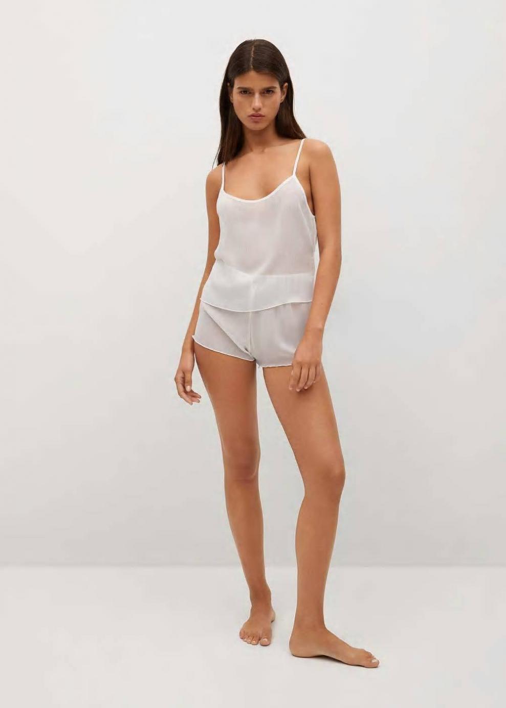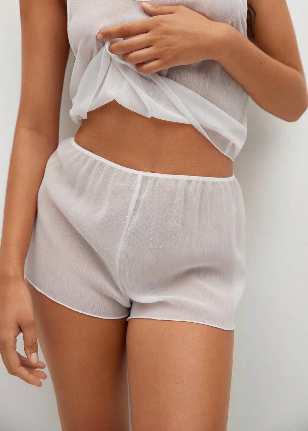 Tejido semitransparente Tejido fluido Diseño corto Tiro alto Cintura elástica Terminaciones pespunteadas…