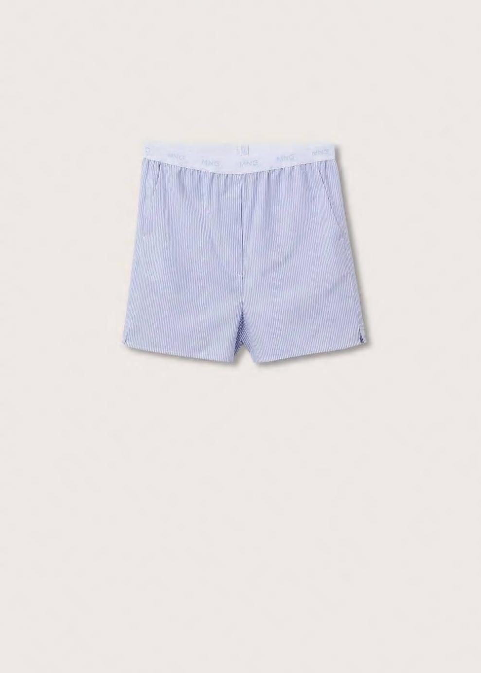 Colección Committed Tejido de algodón Estampado de rayas Diseño corto Diseño recto Cintura elástica Mensaje bordado Dos bolsillos laterales Las prendas etiquetadas como Committed son productos que han sido confeccionadas con fibras y/o procesos de producción sostenible, reduciendo así su impacto ambiental. El objetivo de Mango es respaldar la implementación de prácticas más comprometidas con el medio ambiente, aumentando así, el número de prendas sostenibles en su colección.