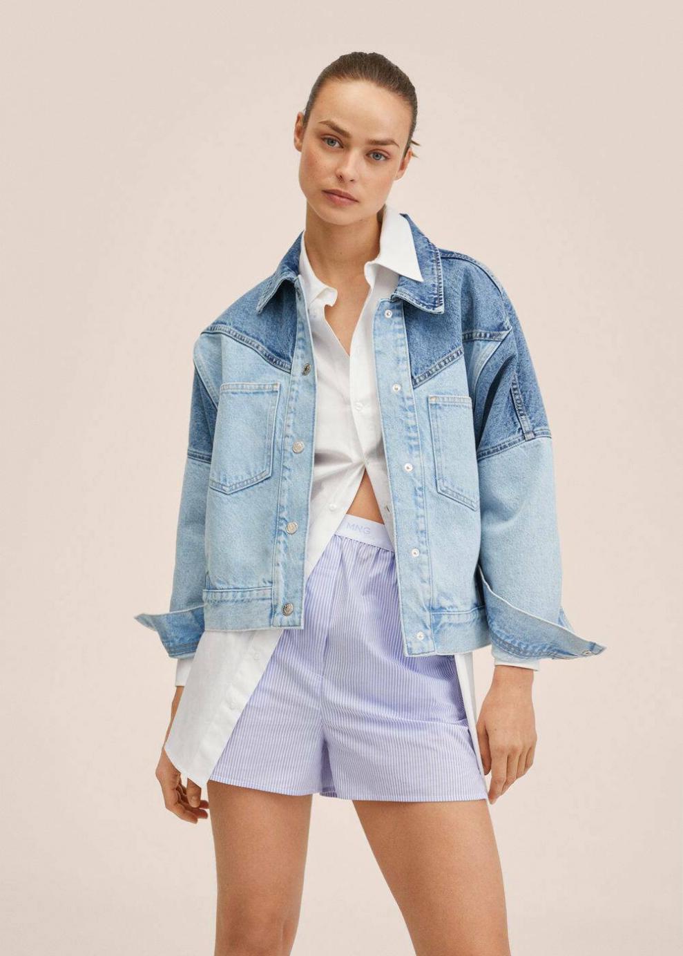 Mujer Short rayas algodón Azul Celeste | Shorts Mango