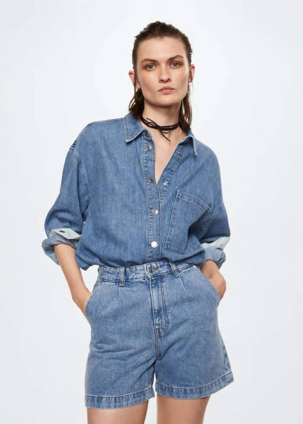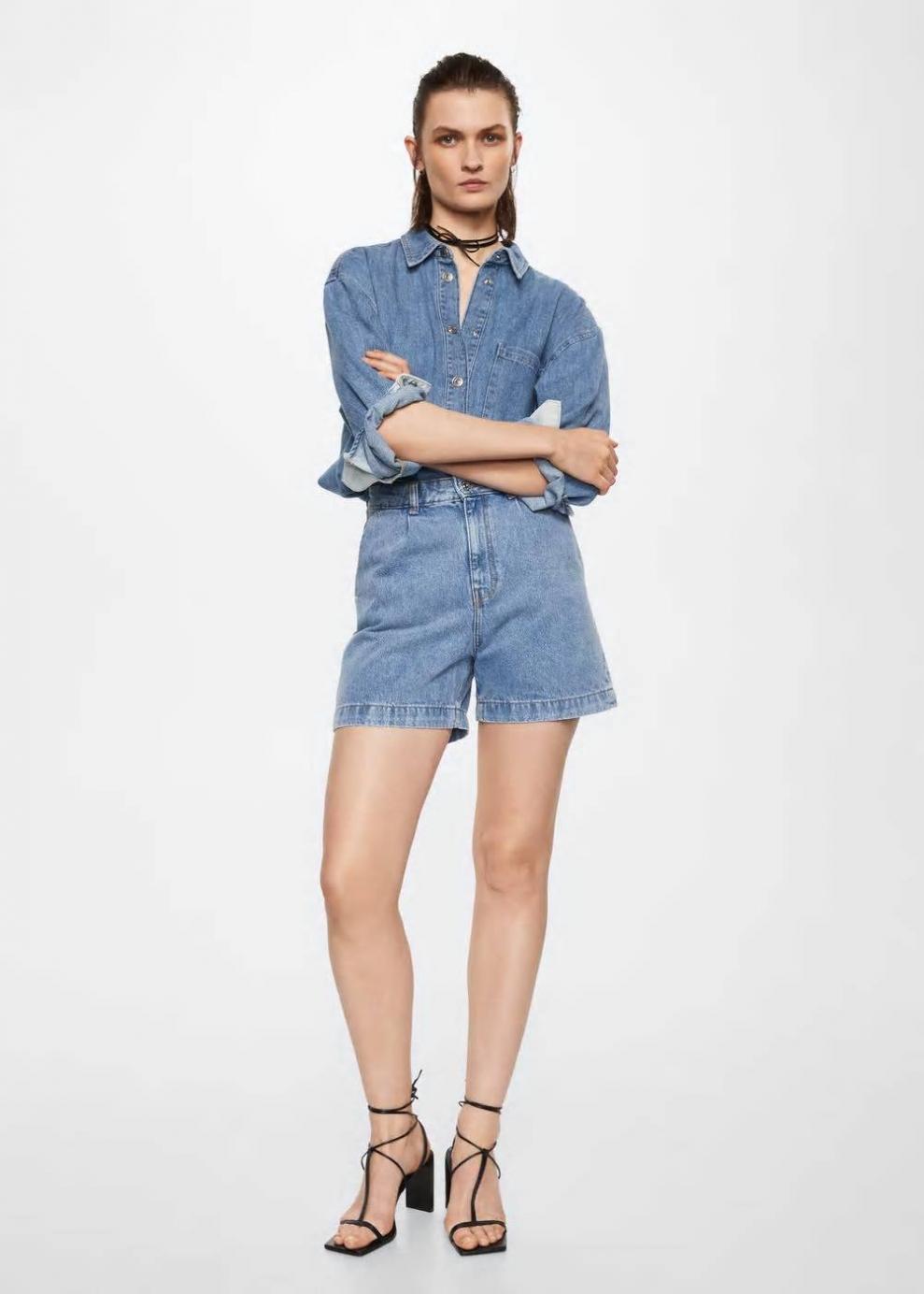 Colección Committed 100% Algodón Fit slouchy Diseño corto Tiro alto Dos bolsillos laterales Dos bolsillos de parche en la parte posterior Detalle de pinzas Trabillas Cierre de cremallera y botón Las prendas etiquetadas como Committed son productos que han sido confeccionadas con fibras y/o procesos de producción sostenible, reduciendo así su impacto ambiental. El objetivo de Mango es respaldar la implementación de prácticas más comprometidas con el medio ambiente, aumentando así, el número de prendas sostenibles en su colección.