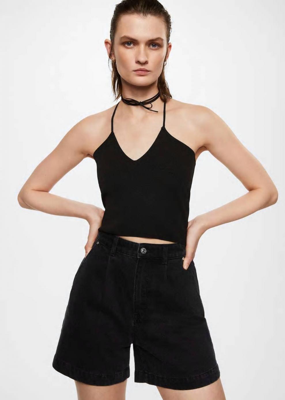 Colección Committed 100% Algodón Fit slouchy Diseño corto Tiro alto Dos bolsillos laterales Dos bolsillos de parche en la parte posterior Detalle de pinzas Trabillas Cierre de cremallera y botón Las prendas etiquetadas como Committed son productos que han sido confeccionadas con fibras y/o procesos de producción sostenible, reduciendo así su impacto ambiental. El objetivo de Mango es respaldar la implementación de prácticas más comprometidas con el medio ambiente, aumentando así, el número de prendas sostenibles en su colección.