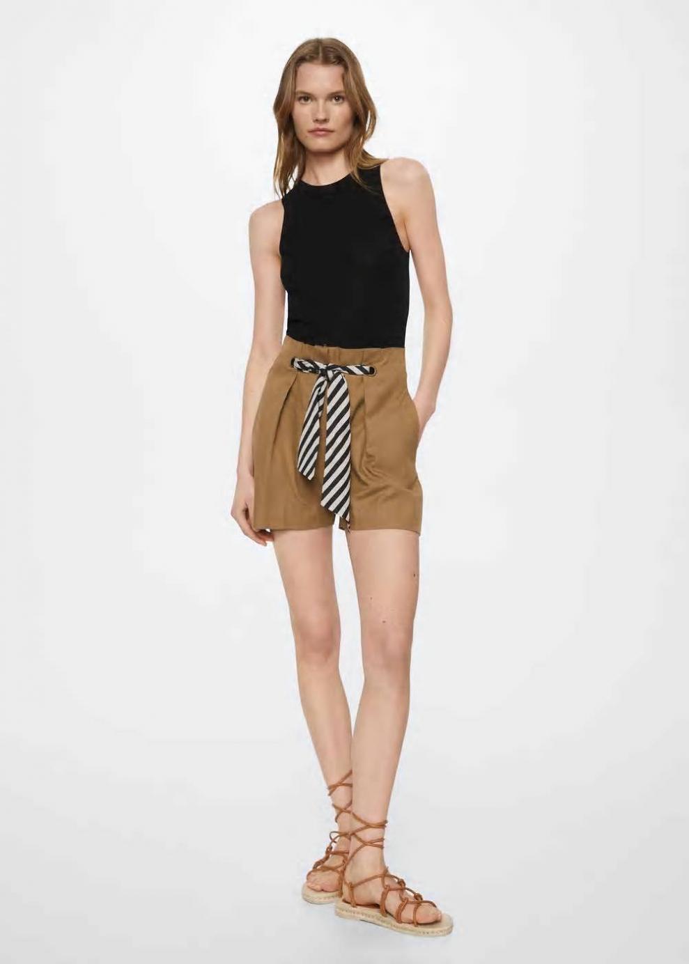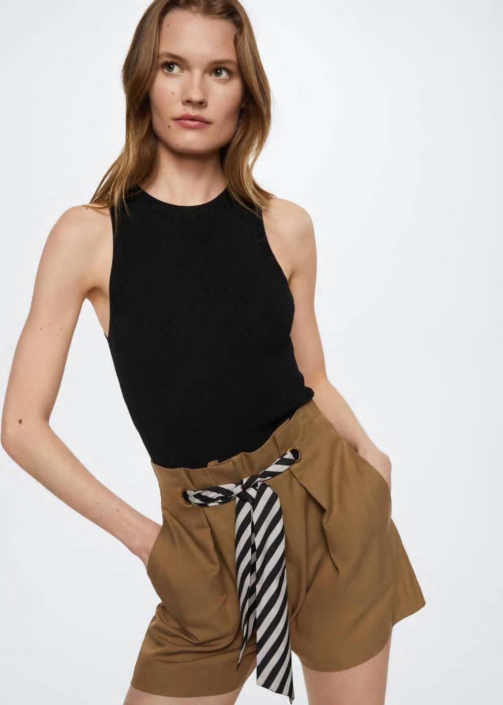 Tejido mezcla algodón y lyocell Diseño corto Detalle de pinzas Fit slouchy Estructura pesada Lazo a la cintura Las prendas etiquetadas como Committed son productos que han sido confeccionadas con fibras y/o procesos de producción sostenible, reduciendo así su impacto ambiental. El objetivo de Mango es respaldar la implementación de prácticas más comprometidas con el medio ambiente, aumentando así, el número de prendas sostenibles en su colección.