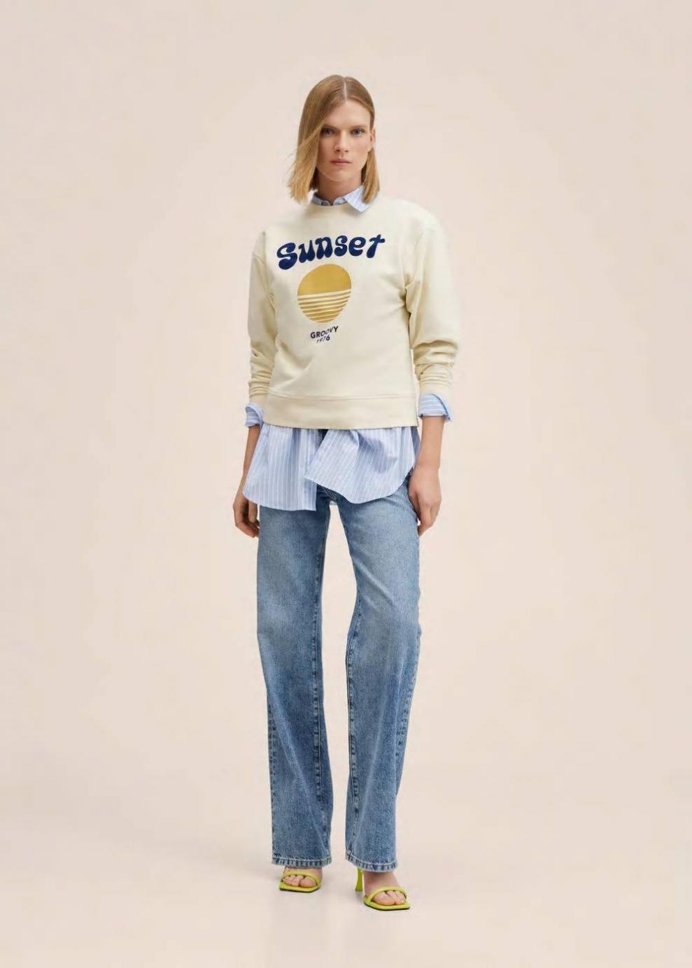Diseño estándar Tamaño mediano Regular fit 100% Algodón Diseño estampado Diseño recto Cuello redondo Manga larga Las prendas etiquetadas como Committed son productos que han sido confeccionadas con fibras y/o procesos de producción sostenible, reduciendo así su impacto ambiental. El objetivo de Mango es respaldar la implementación de prácticas más comprometidas con el medio ambiente, aumentando así, el número de prendas sostenibles en su colección.