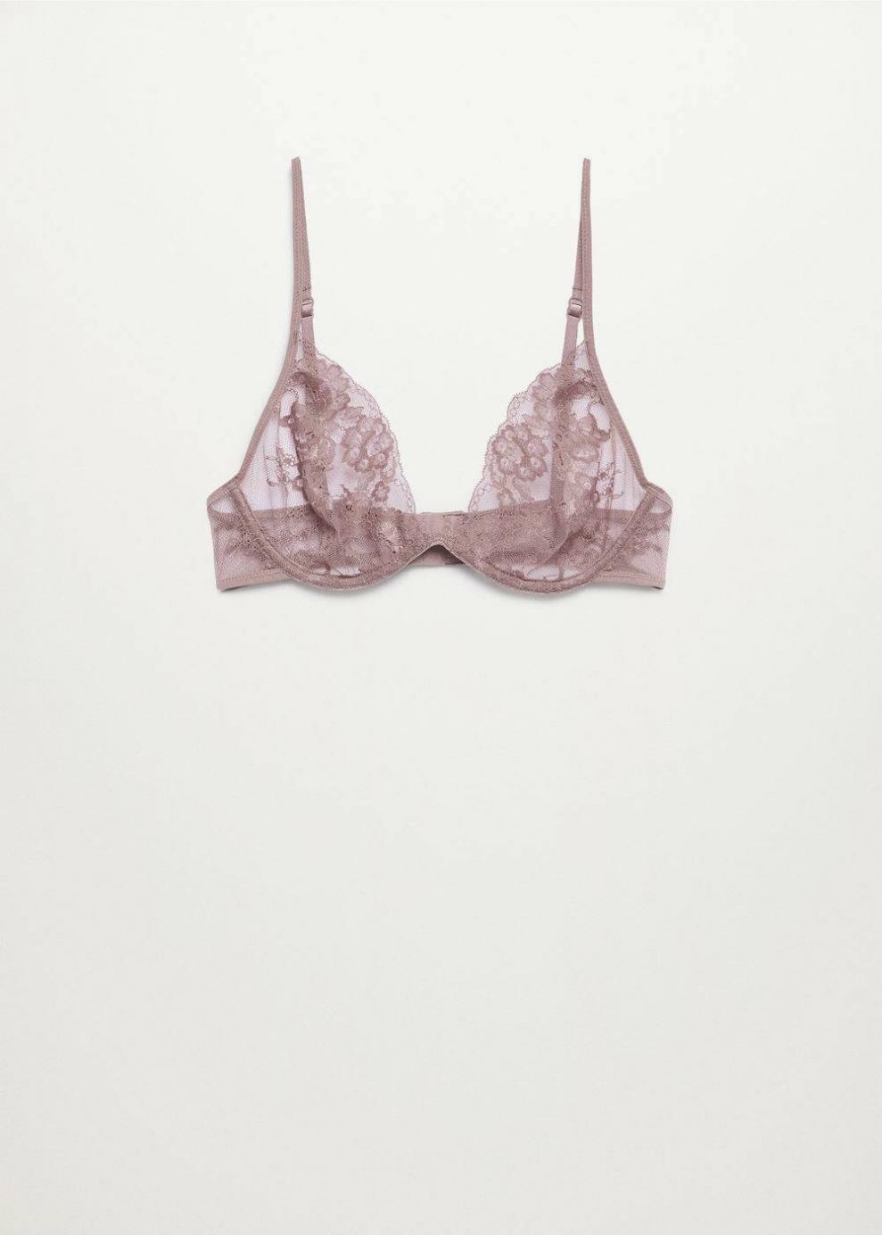 Tejido de encaje Tejido semitransparente Con aros Escote de pico Tirantes finos ajustables Cierre de gancho posterior…