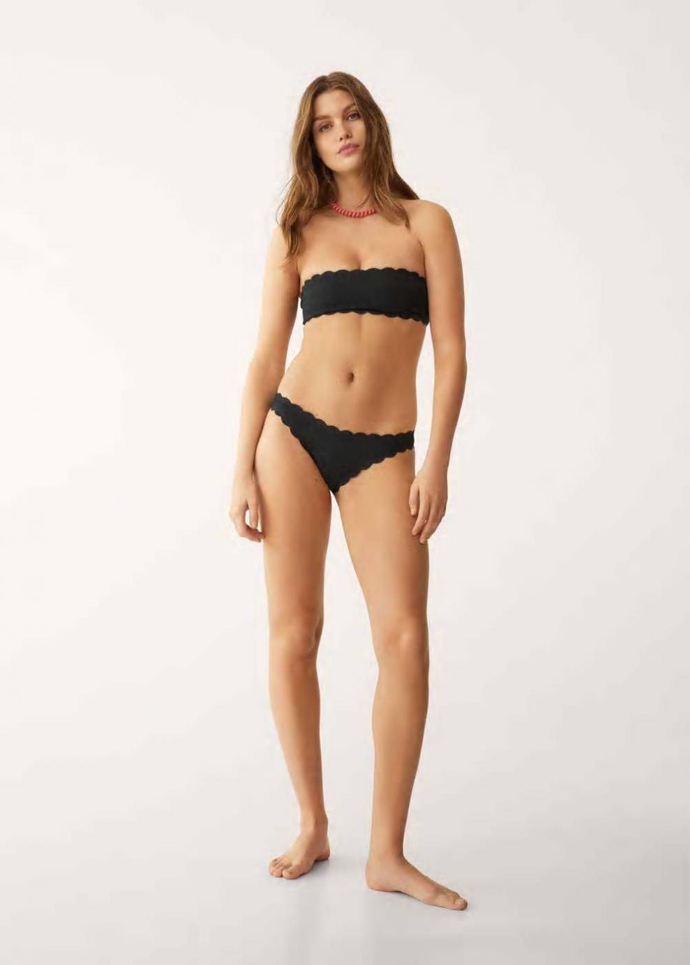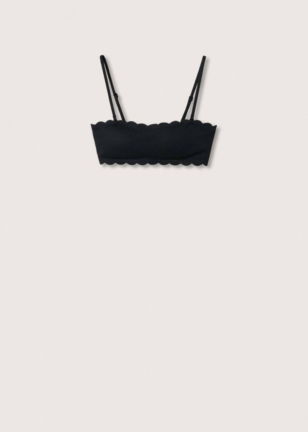 Mujer Top bikini festoneado Negro | Bikinis y bañadores Mango