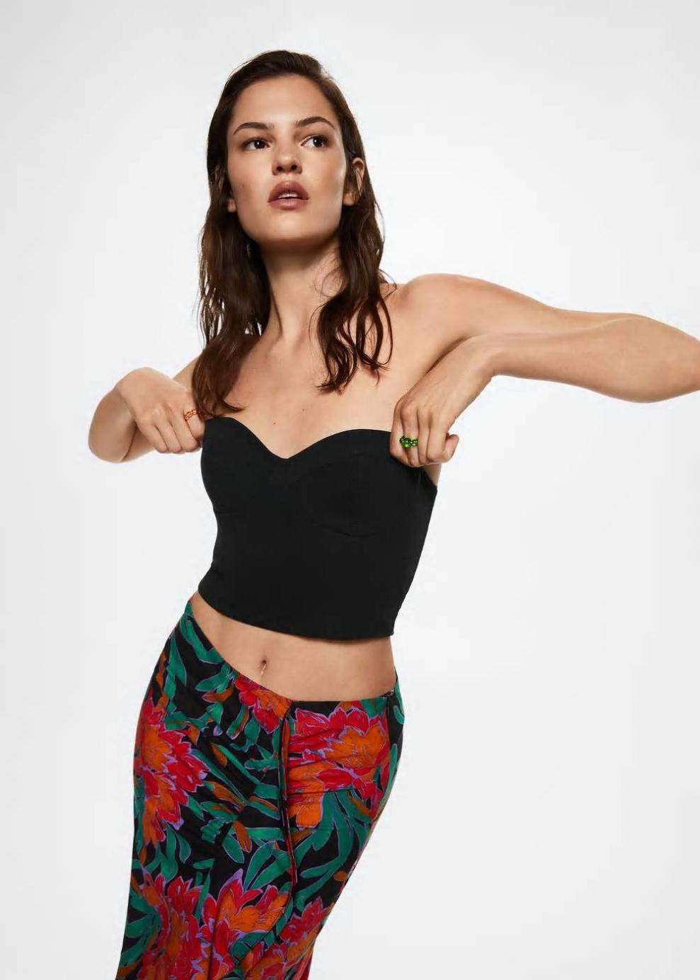 Tejido elástico Diseño entallado Diseño crop Estilo corsetero Cuello escotado Escote corazón Con aros Sin mangas C…