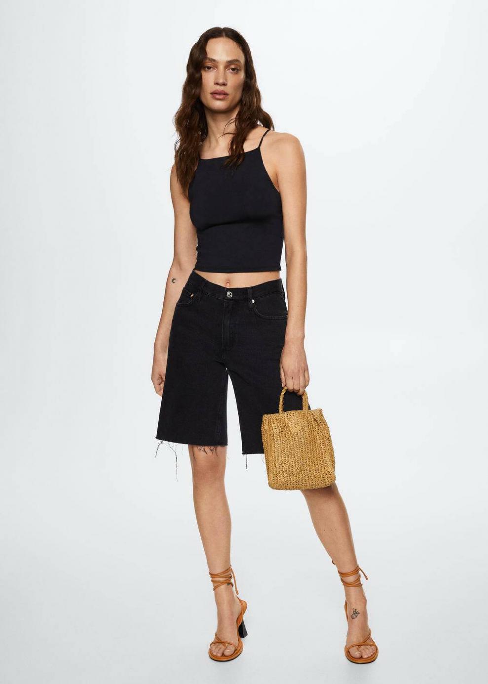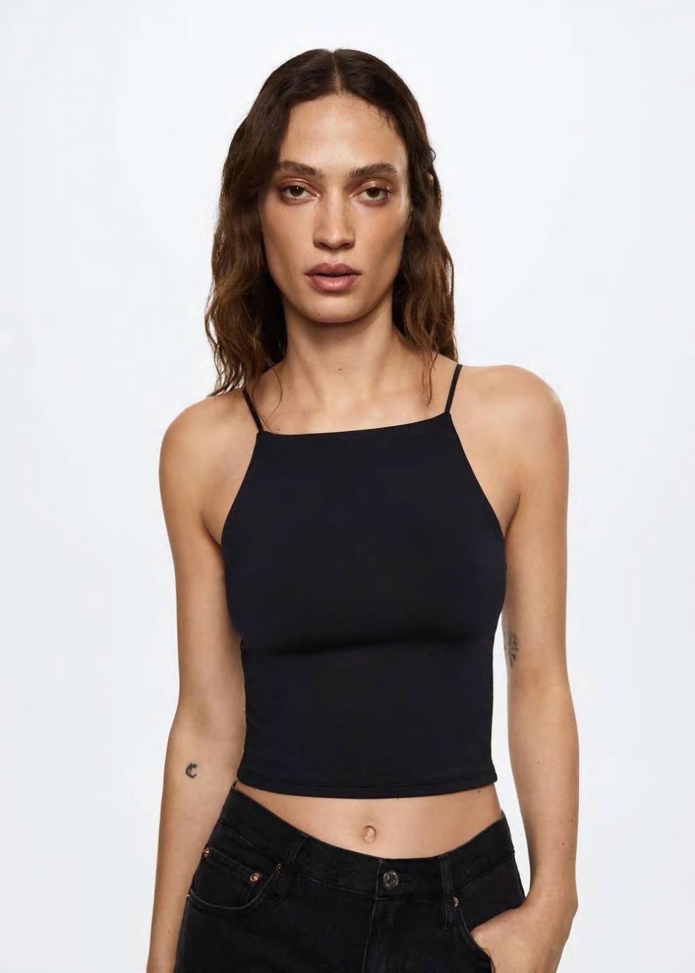 Tejido de poliamida Diseño entallado Diseño crop Cuello halter Tirantes finos…