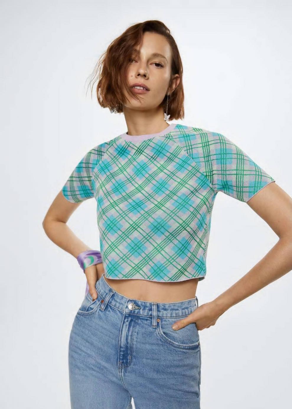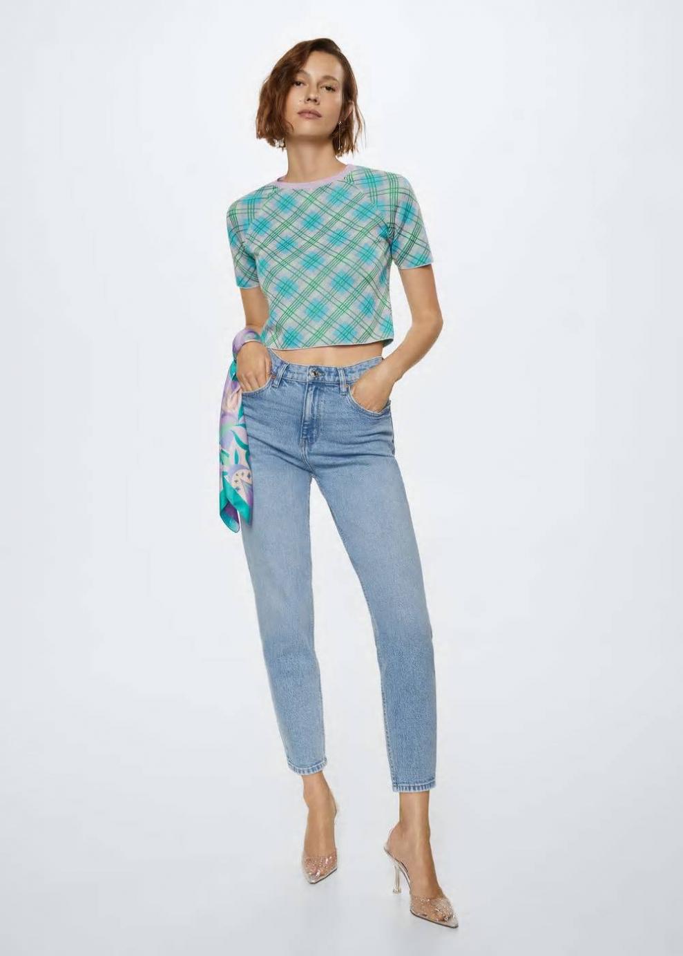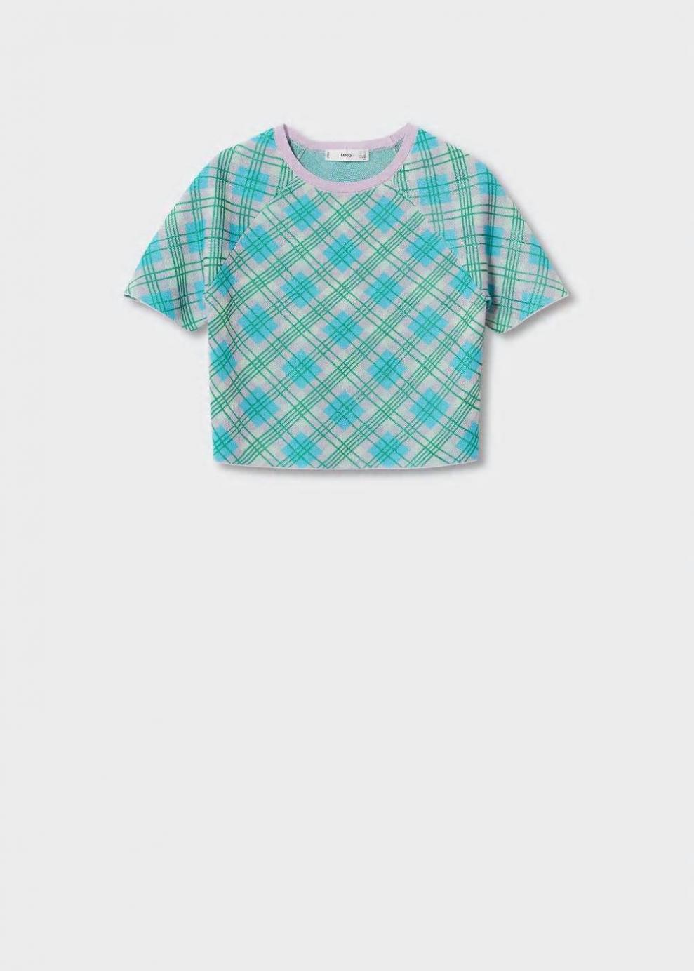 Colección Committed Tejido mezcla de algodón Tejido de punto fino Estampado de cuadros Diseño crop Diseño recto Manga corta Cuello redondo Total look Las prendas etiquetadas como Committed son productos que han sido confeccionadas con fibras y/o procesos de producción sostenible, reduciendo así su impacto ambiental. El objetivo de Mango es respaldar la implementación de prácticas más comprometidas con el medio ambiente, aumentando así, el número de prendas sostenibles en su colección.