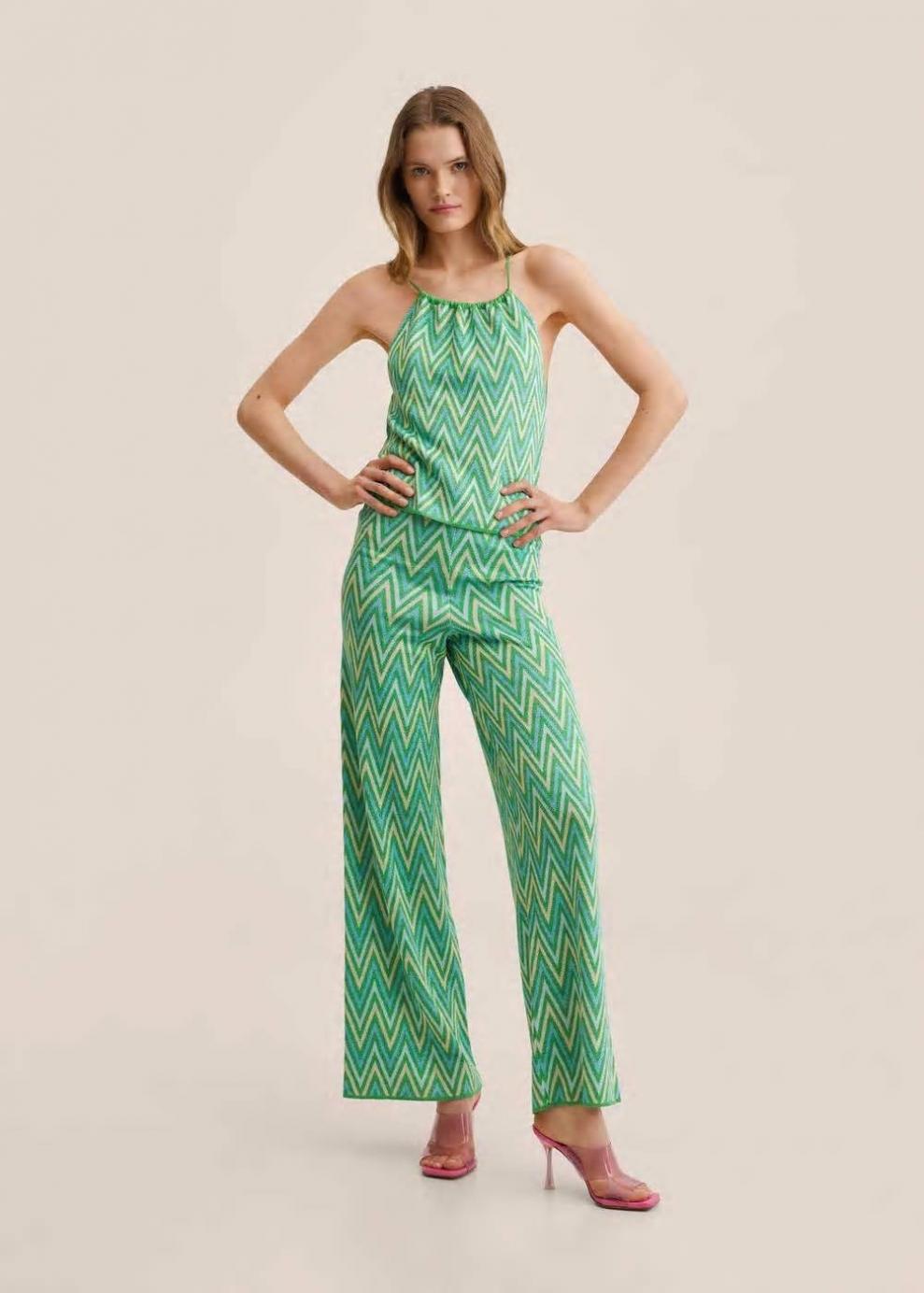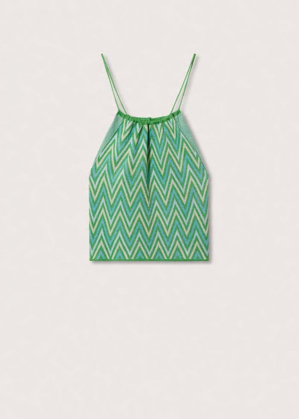 Tejido de punto fino Tejido de lúrex Estampado retro Diseño crop Diseño recto Cuello halter Sin mangas Cierre de lazo en el cuello Total look…