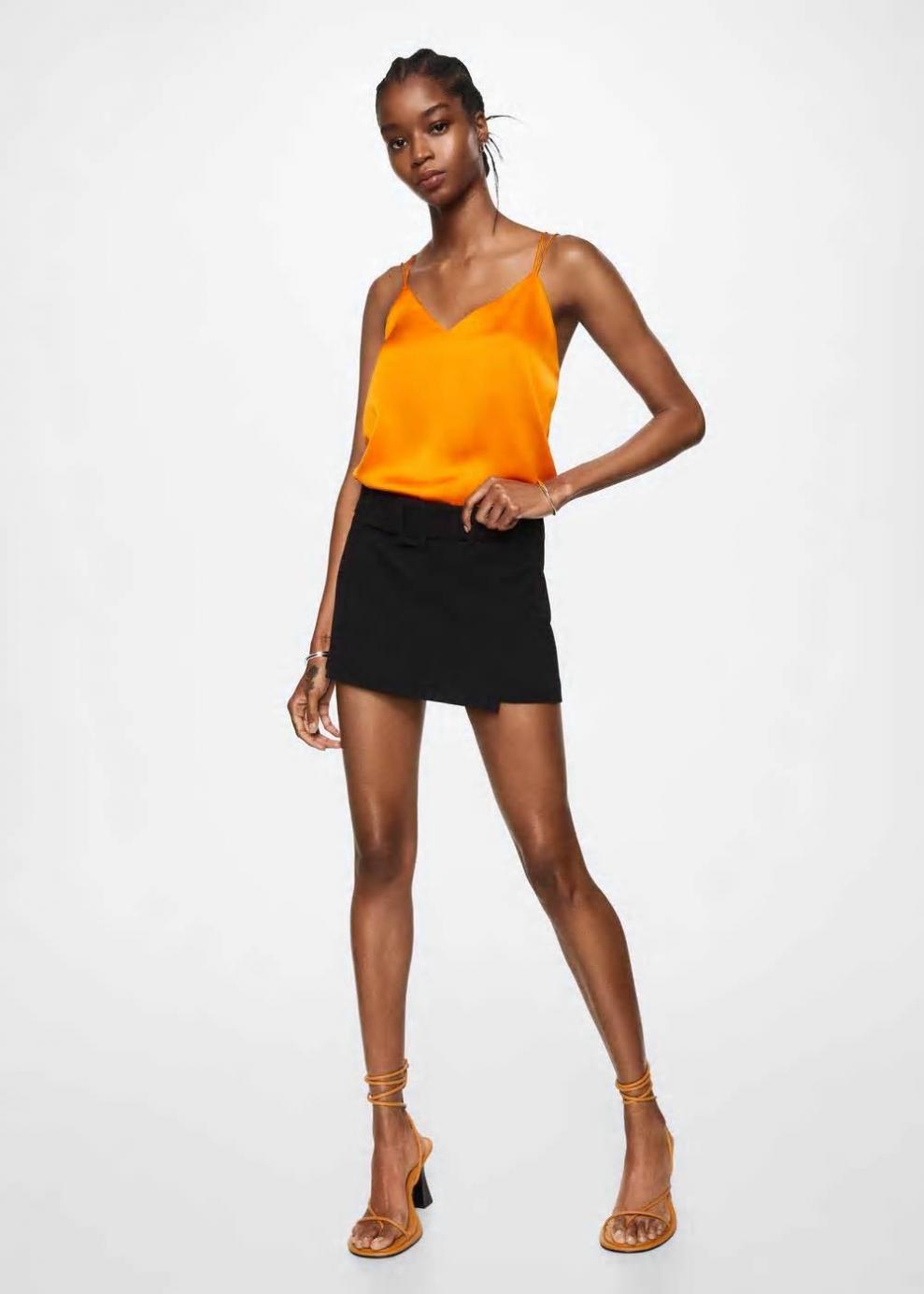 Tejido satinado Diseño recto Cuello escotado Tirantes finos Fruncido elástico Colección fiesta y ceremonia…