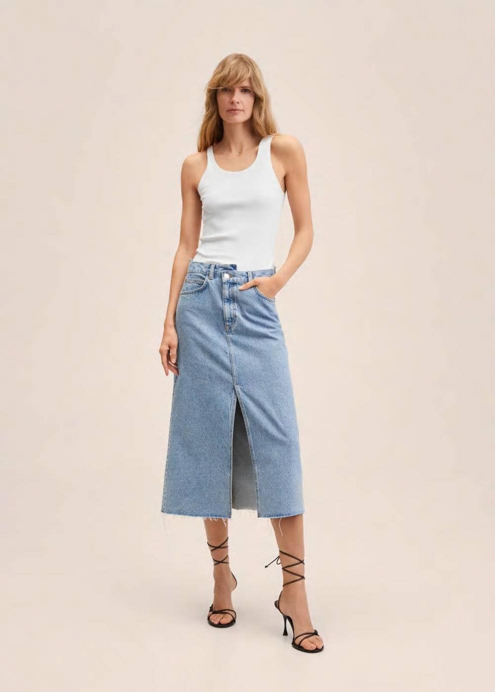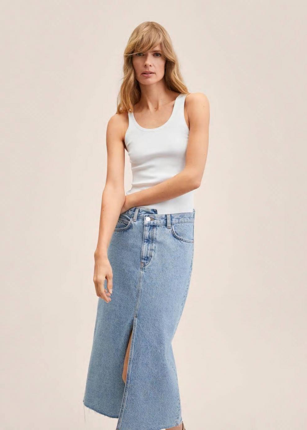 Colección Committed Tejido mezcla de algodón Tejido de canalé Diseño entallado Cuello redondo Sin mangas Tirantes anchos Las prendas etiquetadas como Committed son productos que han sido confeccionadas con fibras y/o procesos de producción sostenible, reduciendo así su impacto ambiental. El objetivo de Mango es respaldar la implementación de prácticas más comprometidas con el medio ambiente, aumentando así, el número de prendas sostenibles en su colección.