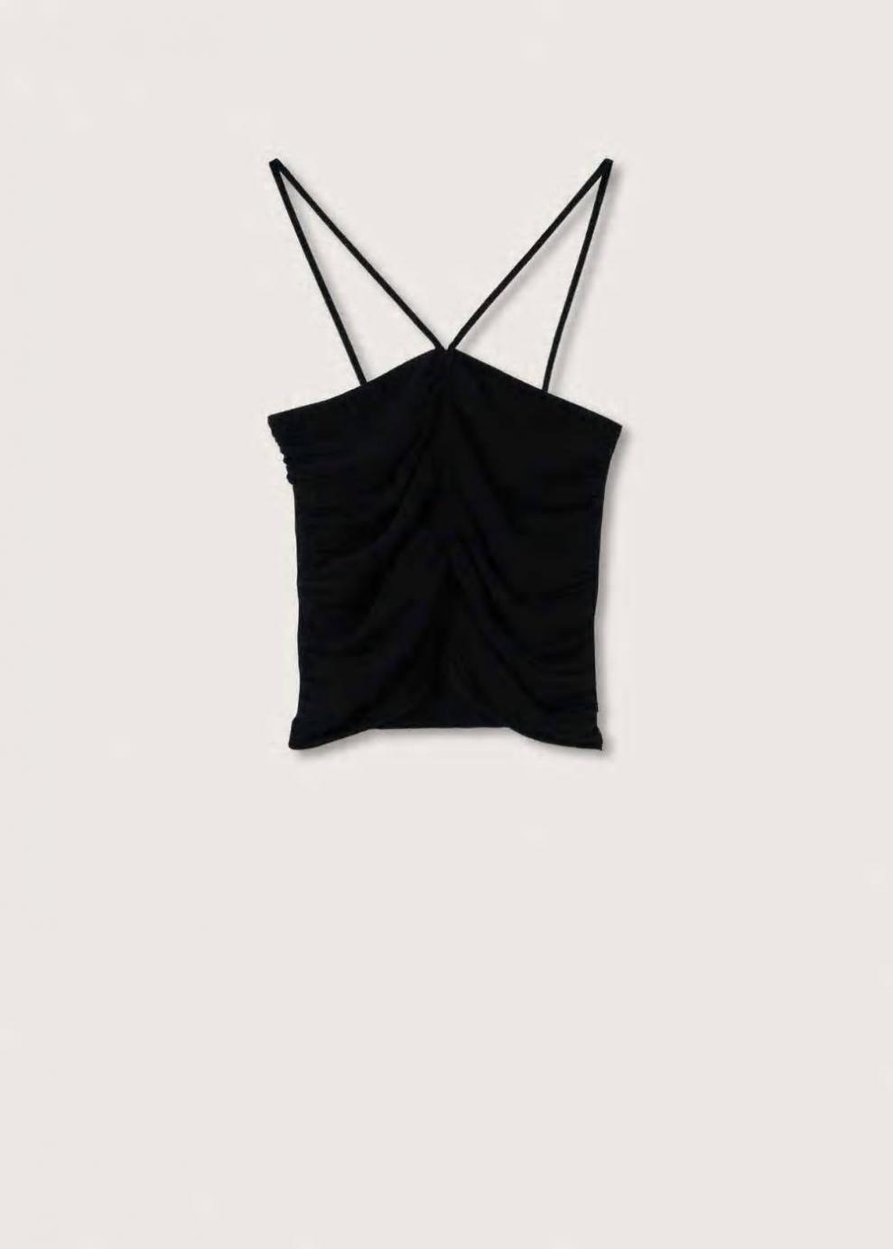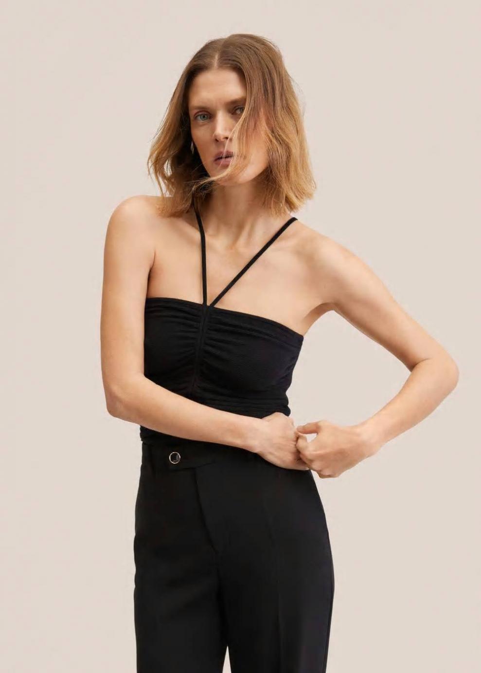 Colección Committed Tejido de punto fino Detalle fruncido central Diseño crop Cuello escotado Tirantes finos Colección fiesta y ceremonia Las prendas etiquetadas como Committed son productos que han sido confeccionadas con fibras y/o procesos de producción sostenible, reduciendo así su impacto ambiental. El objetivo de Mango es respaldar la implementación de prácticas más comprometidas con el medio ambiente, aumentando así, el número de prendas sostenibles en su colección.