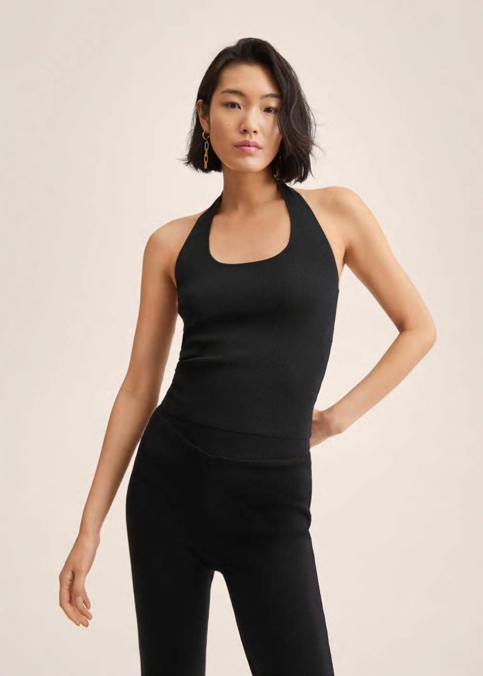 Tejido de punto fino Diseño entallado Diseño crop Cuello halter Sin mangas Espalda abierta Las prendas etiquetadas como Committed son productos que han sido confeccionadas con fibras y/o procesos de producción sostenible, reduciendo así su impacto ambiental. El objetivo de Mango es respaldar la implementación de prácticas más comprometidas con el medio ambiente, aumentando así, el número de prendas sostenibles en su colección.