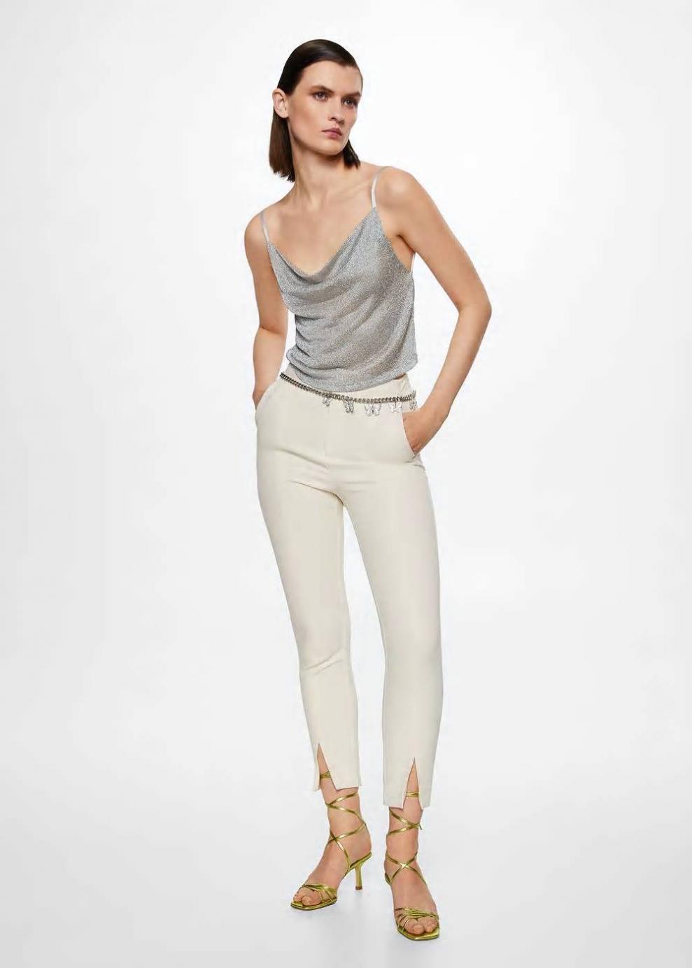 Tejido de punto Tejido semitransparente Acabado metalizado Diseño recto Diseño crop Cuello drapeado Tirantes finos Espalda …