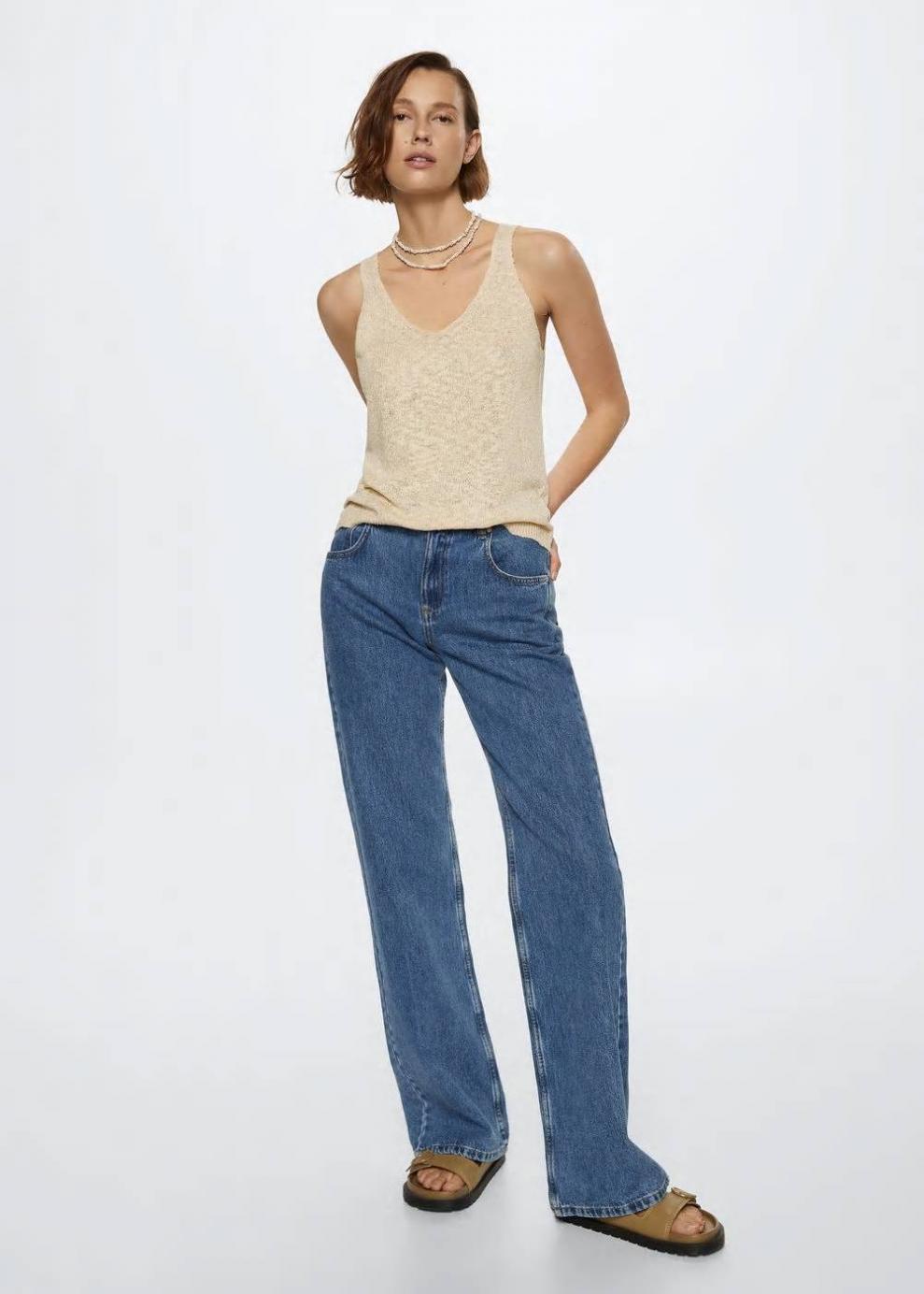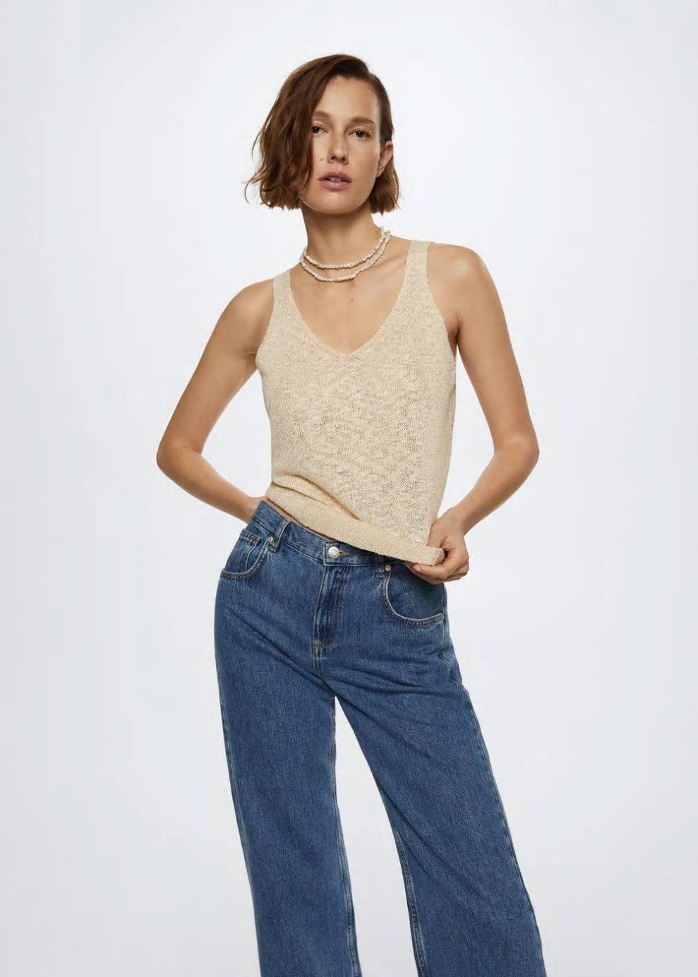 Diseño recto Tejido de punto fino Tejido con textura Tirantes anchos Cuello pico Disponible Plus…