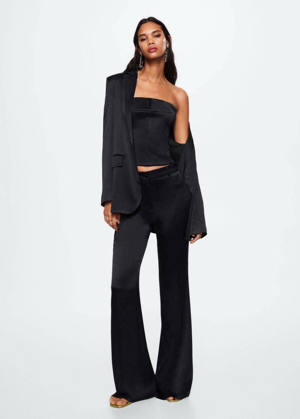 Tejido satinado Diseño bandeau Diseño crop Diseño entallado Sin mangas Costuras decorativas Cierre lateral de cremallera Total look Colección fiesta y ceremonia…
