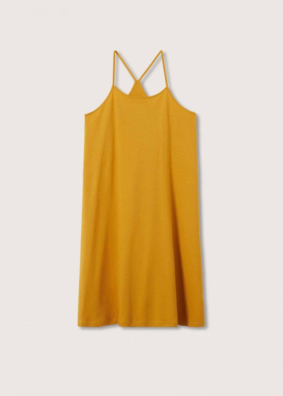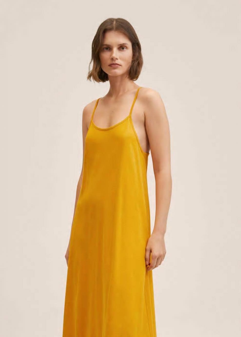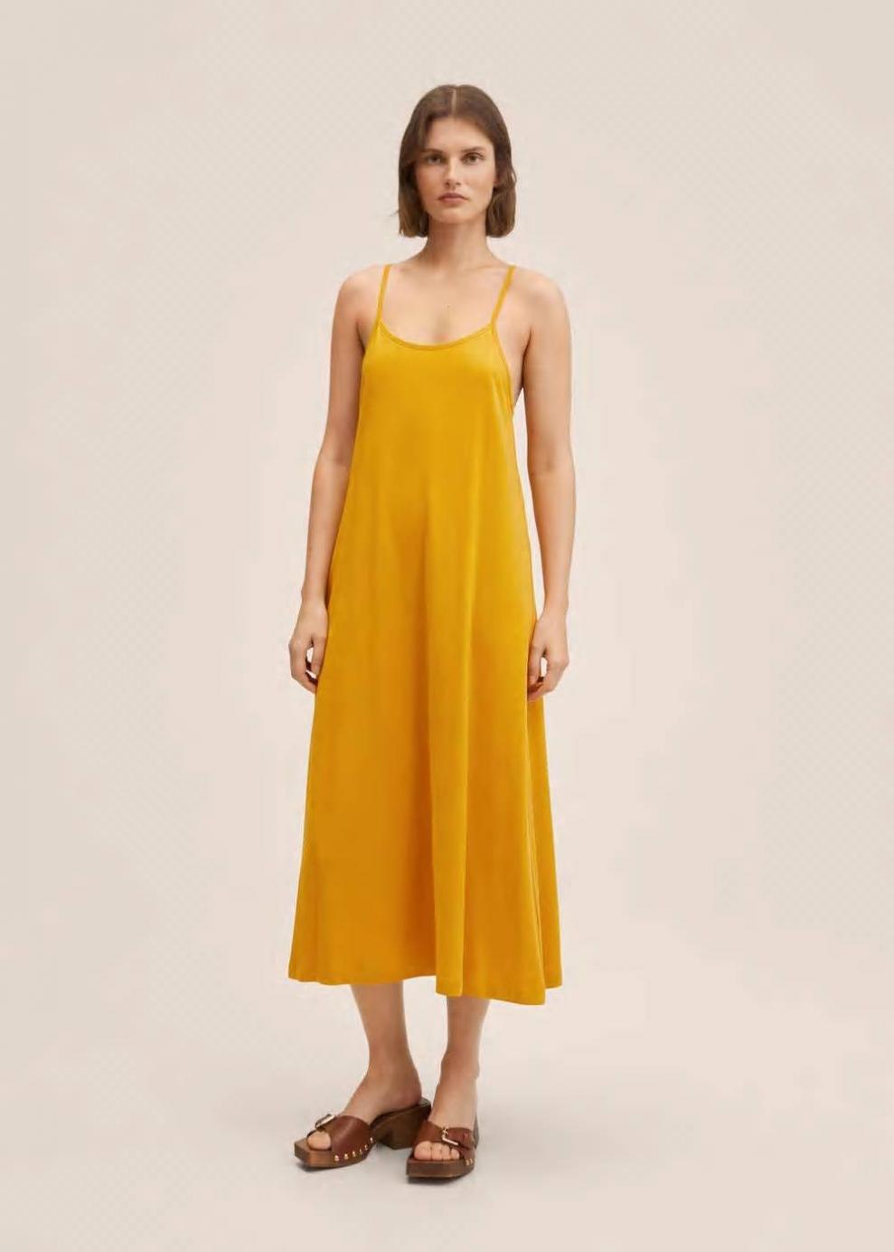 Colección Committed 100% Algodón Diseño largo Diseño evasé Cuello escotado Sin mangas Tirantes finos Espalda cruzada Las prendas etiquetadas como Committed son productos que han sido confeccionadas con fibras y/o procesos de producción sostenible, reduciendo así su impacto ambiental. El objetivo de Mango es respaldar la implementación de prácticas más comprometidas con el medio ambiente, aumentando así, el número de prendas sostenibles en su colección.