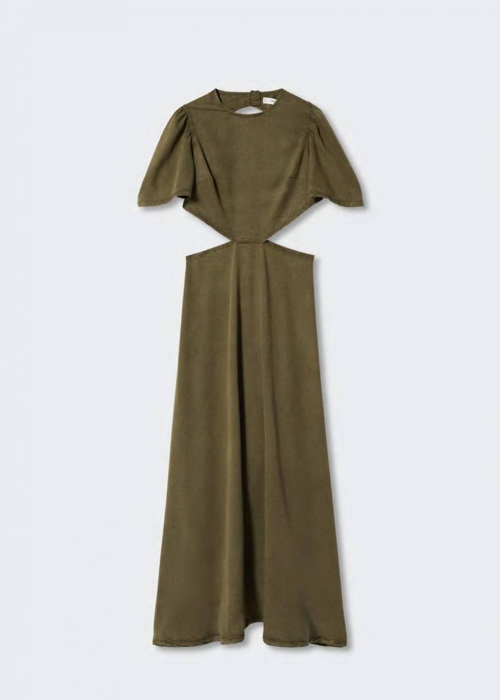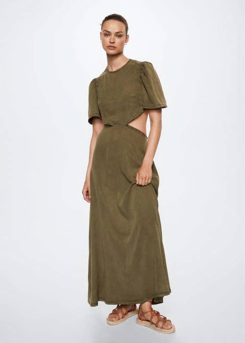 Cuello redondo Cierre trasero Diseño maxi Diseño evasé Sin forro interior Tejido ligero Manga corta Las prendas etiquetadas como Committed son productos que han sido confeccionadas con fibras y/o procesos de producción sostenible, reduciendo así su impacto ambiental. El objetivo de Mango es respaldar la implementación de prácticas más comprometidas con el medio ambiente, aumentando así, el número de prendas sostenibles en su colección.