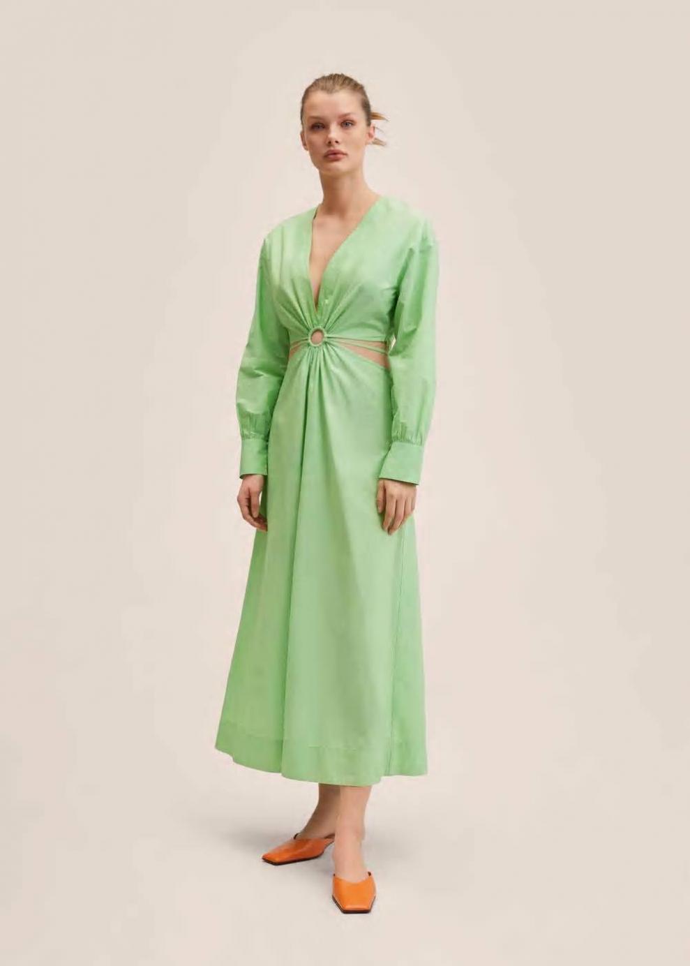 Colección Committed Tejido 100% algodón Diseño evasé Diseño largo Cuello pico Detalle de aro en el escote Aberturas laterales Manga larga Cierre lateral de cremallera Cierre de lazo en la parte posterior Colección fiesta y ceremonia Las prendas etiquetadas como Committed son productos que han sido confeccionadas con fibras y/o procesos de producción sostenible, reduciendo así su impacto ambiental. El objetivo de Mango es respaldar la implementación de prácticas más comprometidas con el medio ambiente, aumentando así, el número de prendas sostenibles en su colección.