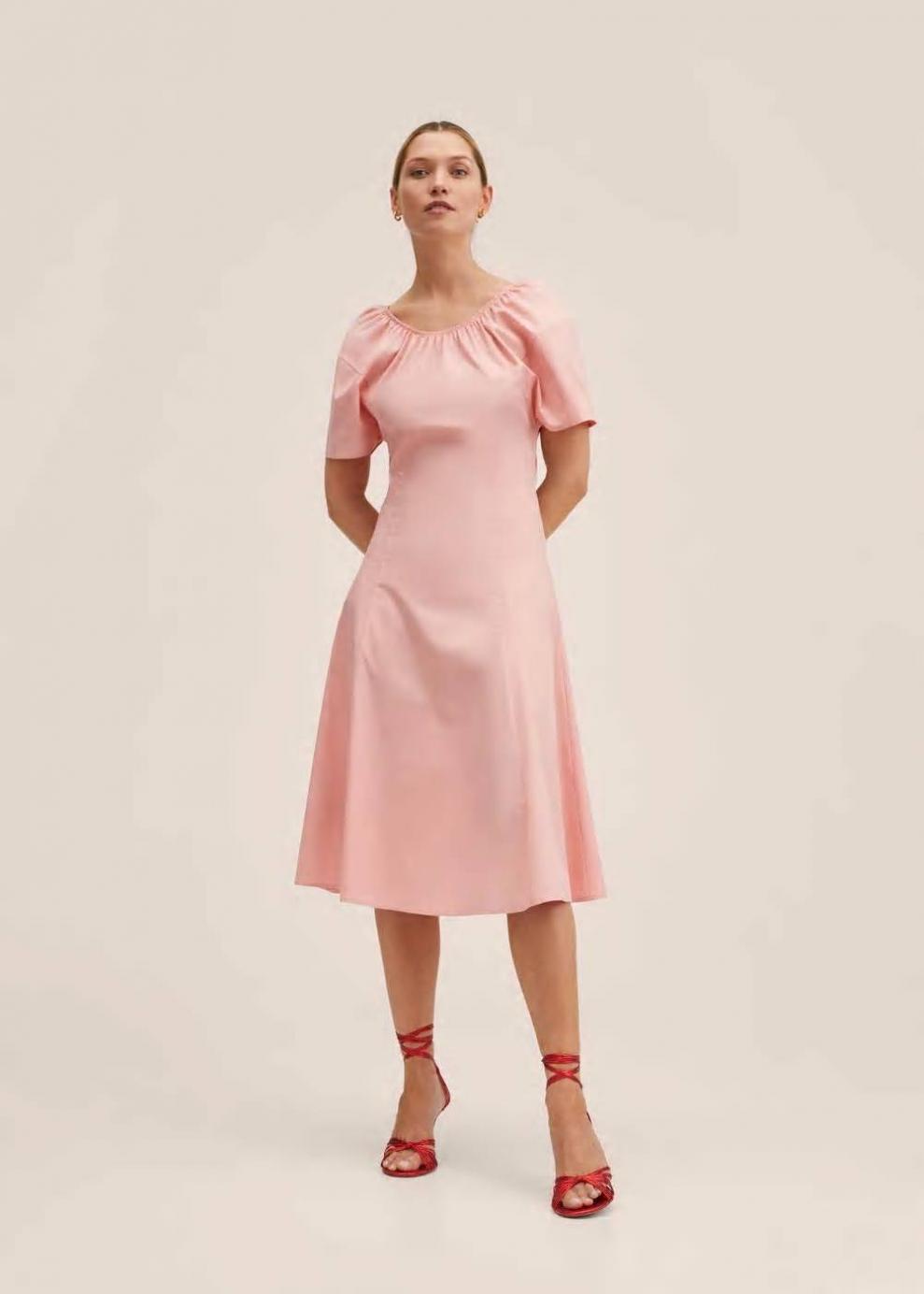 Sin forro interior Cierre trasero Tejido ligero 100% Algodón Diseño largo Diseño evasé Diseño midi Bajo acampanado Cuello redondo Fruncido elástico Manga corta Cierre de cremallera en la parte posterior Colección fiesta y ceremonia Las prendas etiquetadas como Committed son productos que han sido confeccionadas con fibras y/o procesos de producción sostenible, reduciendo así su impacto ambiental. El objetivo de Mango es respaldar la implementación de prácticas más comprometidas con el medio ambiente, aumentando así, el número de prendas sostenibles en su colección.