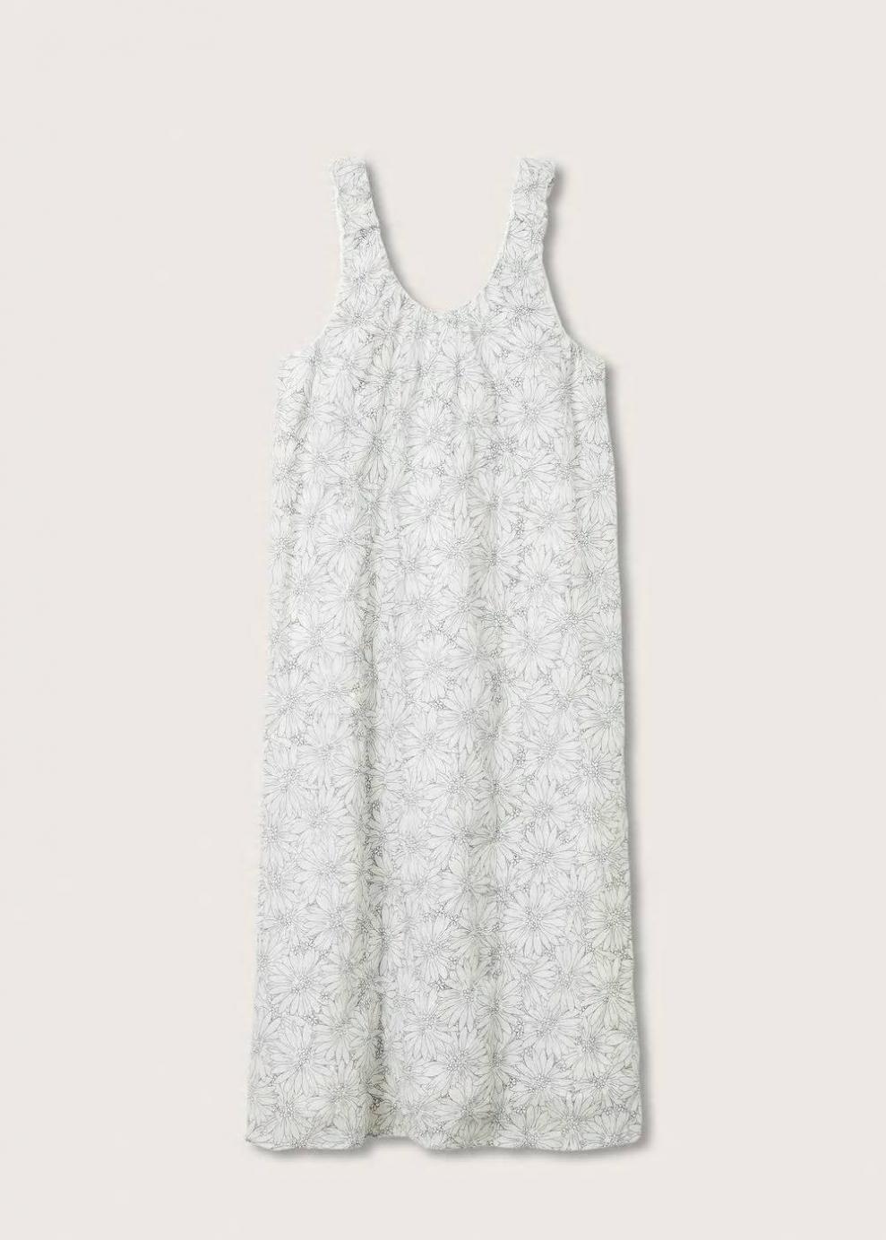 Cierre trasero Tejido ligero Diseño largo Diseño evasé 100% Algodón Solo forro Estampado de flores Diseño recto Diseño midi Cuello escotado Tirantes anchos Sin mangas Forro interior de algodón Las prendas etiquetadas como Committed son productos que han sido confeccionadas con fibras y/o procesos de producción sostenible, reduciendo así su impacto ambiental. El objetivo de Mango es respaldar la implementación de prácticas más comprometidas con el medio ambiente, aumentando así, el número de prendas sostenibles en su colección.