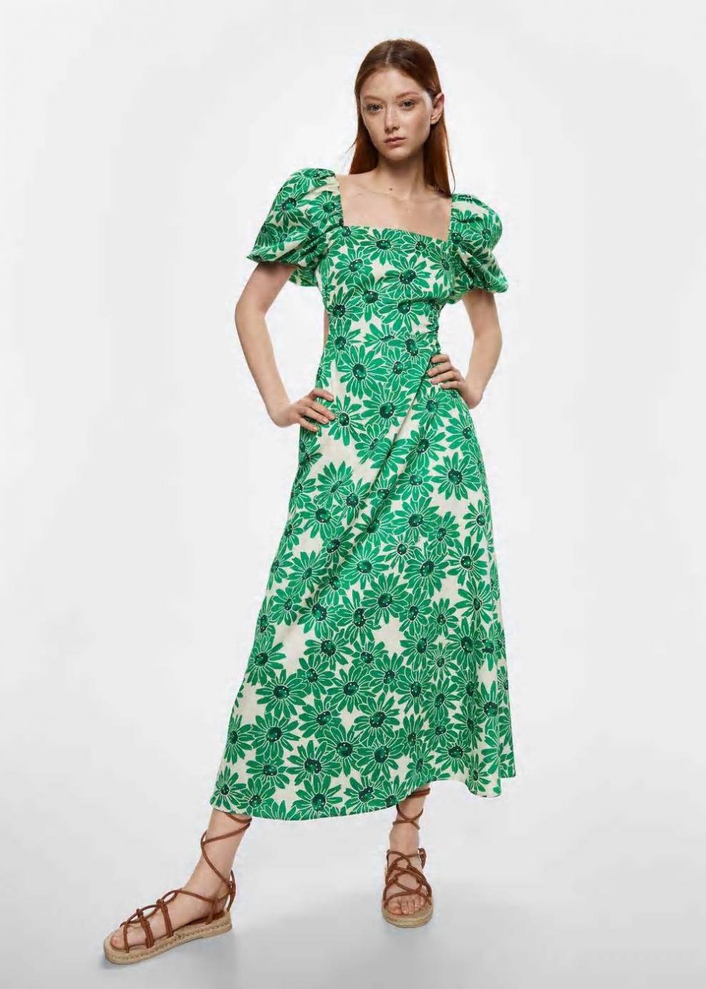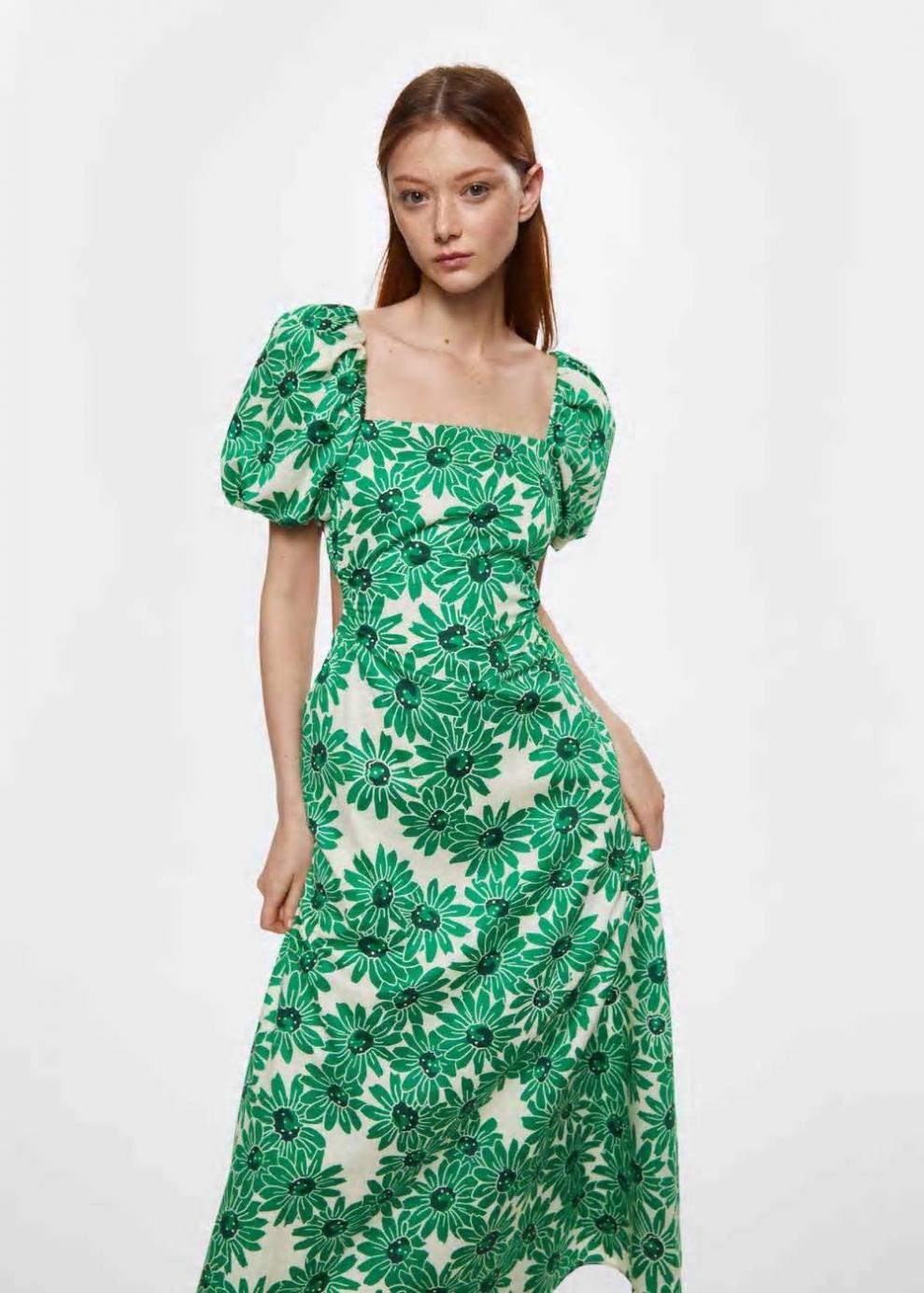 Colección Committed 100% Algodón Estampado de flores Estampado margaritas Diseño midi Diseño evasé Cuello cuadrado Manga corta abullonada Puños elásticos Panel elástico Abertura posterior Fruncido elástico Forro interior Las prendas etiquetadas como Committed son productos que han sido confeccionadas con fibras y/o procesos de producción sostenible, reduciendo así su impacto ambiental. El objetivo de Mango es respaldar la implementación de prácticas más comprometidas con el medio ambiente, aumentando así, el número de prendas sostenibles en su colección.