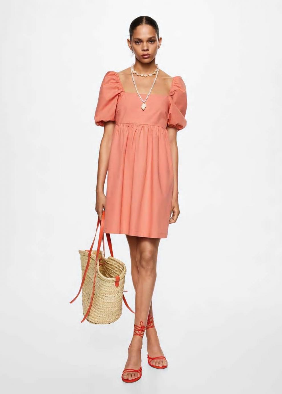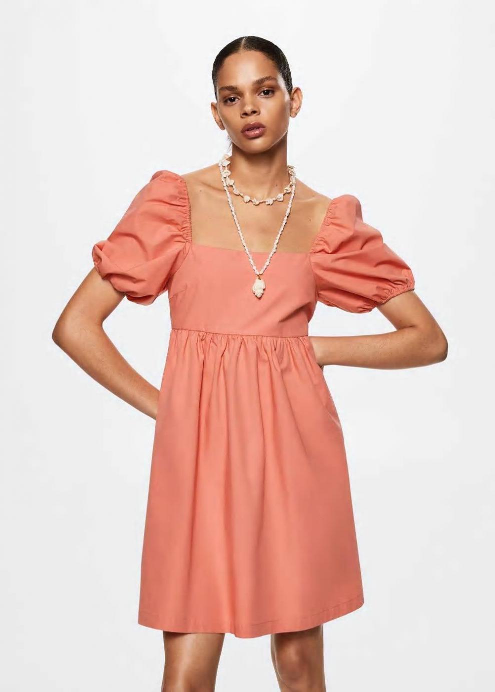 Colección Committed 100% Algodón Diseño corto Diseño evasé Cuello escotado Manga corta abullonada Cierre de cremallera en la parte posterior Las prendas etiquetadas como Committed son productos que han sido confeccionadas con fibras y/o procesos de producción sostenible, reduciendo así su impacto ambiental. El objetivo de Mango es respaldar la implementación de prácticas más comprometidas con el medio ambiente, aumentando así, el número de prendas sostenibles en su colección.