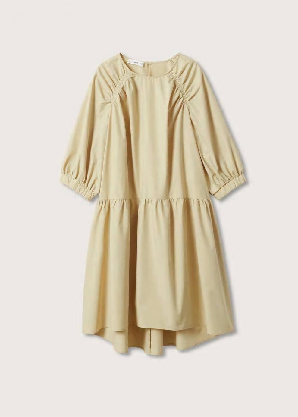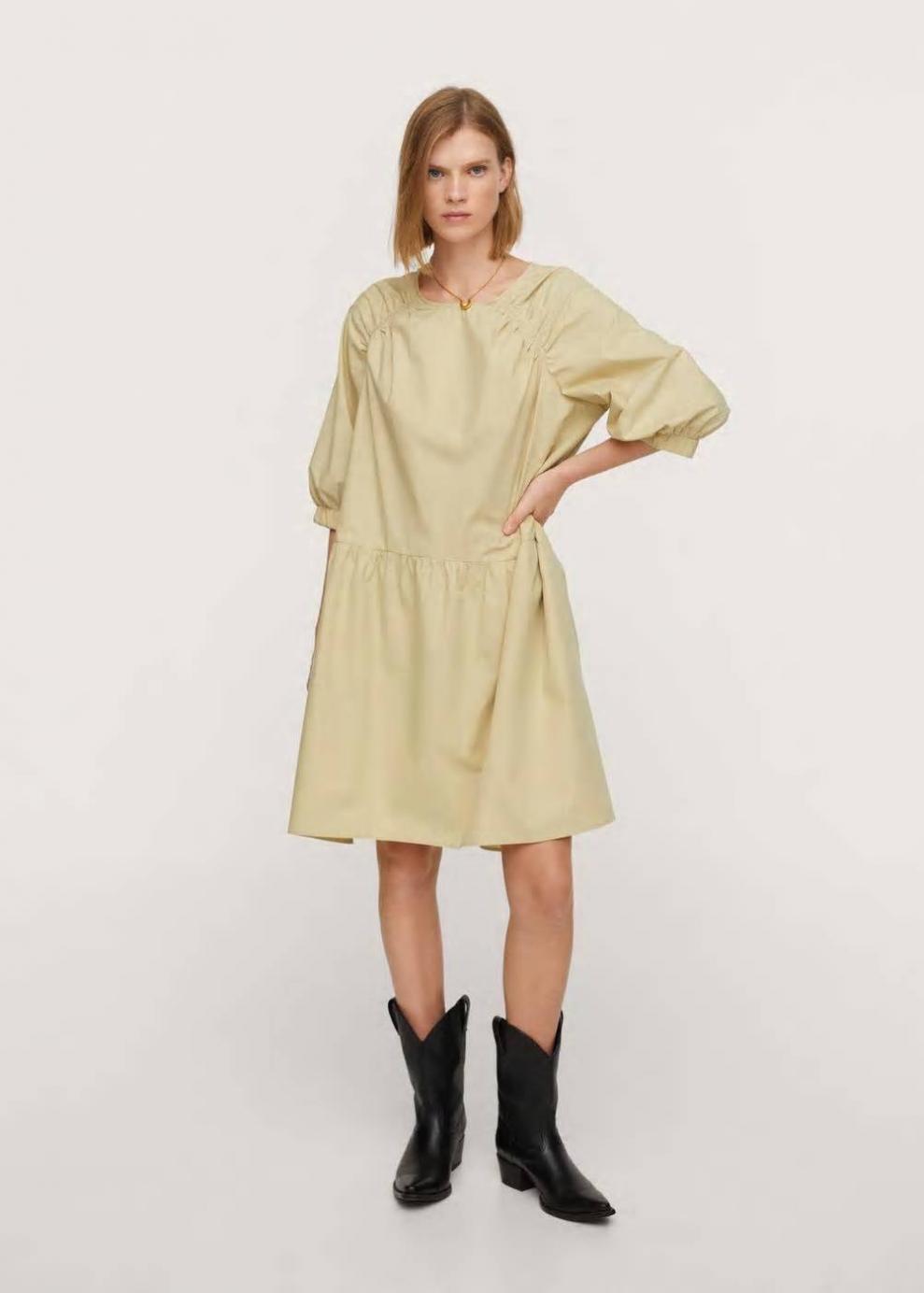 Colección Committed Diseño oversize Diseño midi Tejido 100% algodón Diseño ancho Diseño corto Cuello cuadrado Manga tres cuartos fruncida Detalles fruncidos Bolsillos laterales Bajo asimétrico Cierre de botón en la parte posterior Las prendas etiquetadas como Committed son productos que han sido confeccionadas con fibras y/o procesos de producción sostenible, reduciendo así su impacto ambiental. El objetivo de Mango es respaldar la implementación de prácticas más comprometidas con el medio ambiente, aumentando así, el número de prendas sostenibles en su colección.