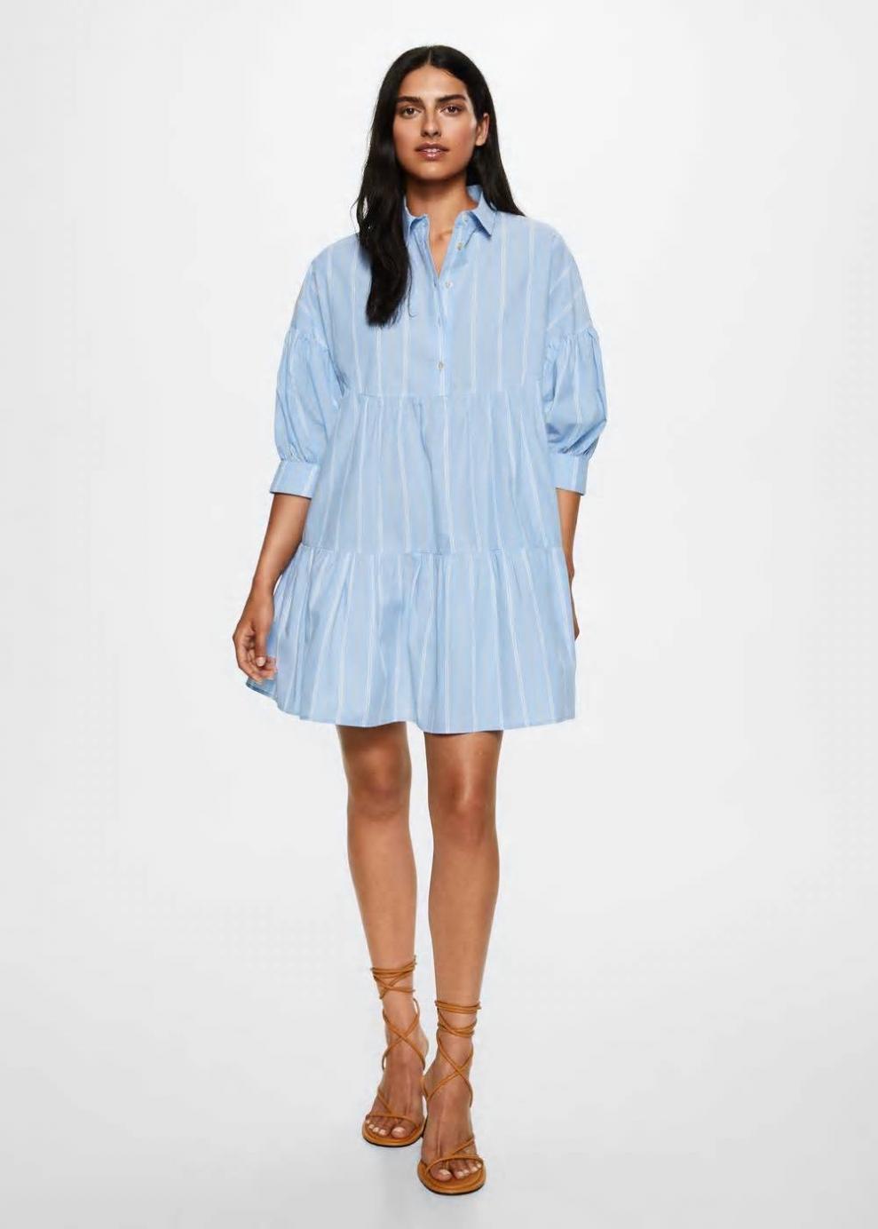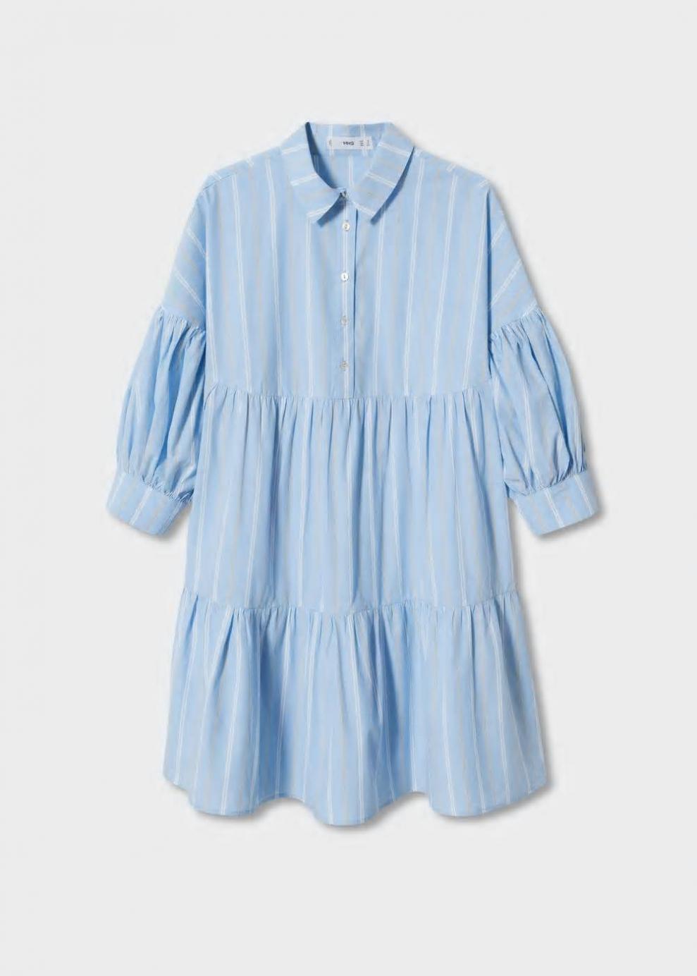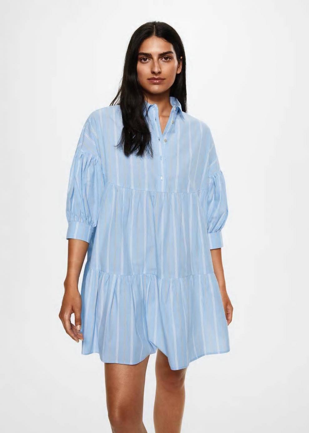 Colección Committed Tejido 100% algodón Tejido fluido Estampado de rayas Diseño oversize Diseño corto Volantes decorativos Costuras decorativas Cuello camisero pico Manga tres cuartos con puños abotonados Sin forro interior Las prendas etiquetadas como Committed son productos que han sido confeccionadas con fibras y/o procesos de producción sostenible, reduciendo así su impacto ambiental. El objetivo de Mango es respaldar la implementación de prácticas más comprometidas con el medio ambiente, aumentando así, el número de prendas sostenibles en su colección.