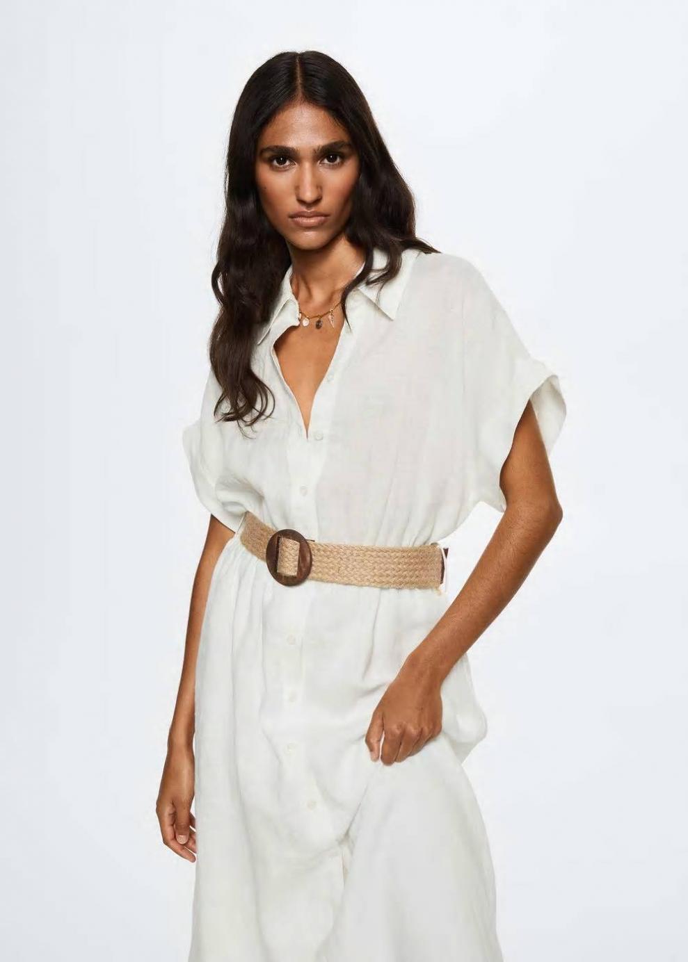 Colección Committed 100% Lino Diseño largo Diseño evasé Cuello camisero Manga corta Cinturón desmontable Cierre de hebilla Cierre de botones en la parte delantera Las prendas etiquetadas como Committed son productos que han sido confeccionadas con fibras y/o procesos de producción sostenible, reduciendo así su impacto ambiental. El objetivo de Mango es respaldar la implementación de prácticas más comprometidas con el medio ambiente, aumentando así, el número de prendas sostenibles en su colección.