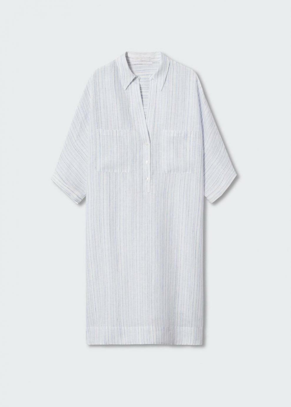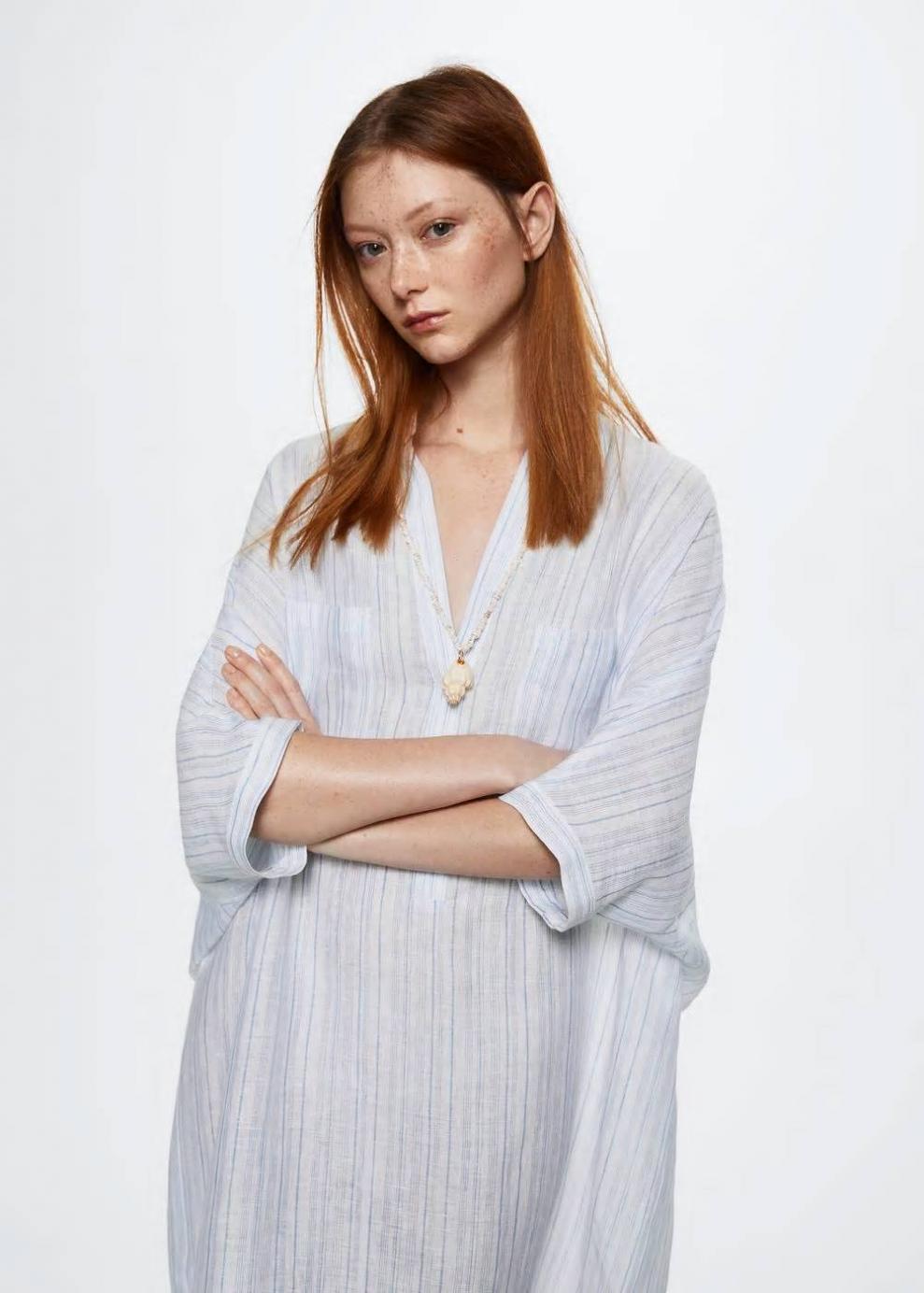 Limited edition Colección Committed 100% Lino Estampado de rayas Diseño oversize Diseño midi Diseño evasé Cuello camisero Manga corta murciélago Dos bolsillos de parche en el pecho Cierre de botones en la parte delantera Colección baño Las prendas etiquetadas como Committed son productos que han sido confeccionadas con fibras y/o procesos de producción sostenible, reduciendo así su impacto ambiental. El objetivo de Mango es respaldar la implementación de prácticas más comprometidas con el medio ambiente, aumentando así, el número de prendas sostenibles en su colección.