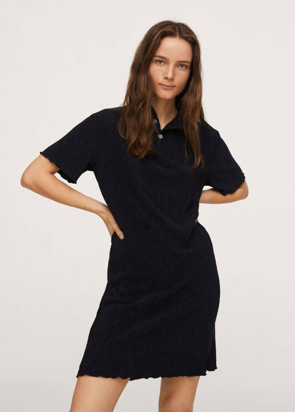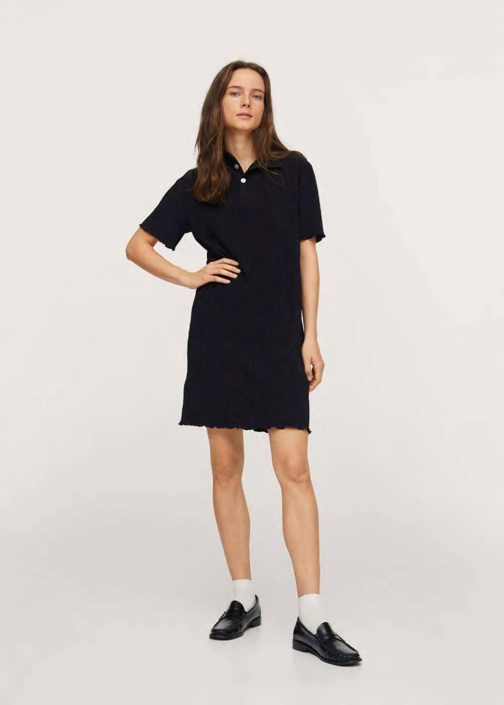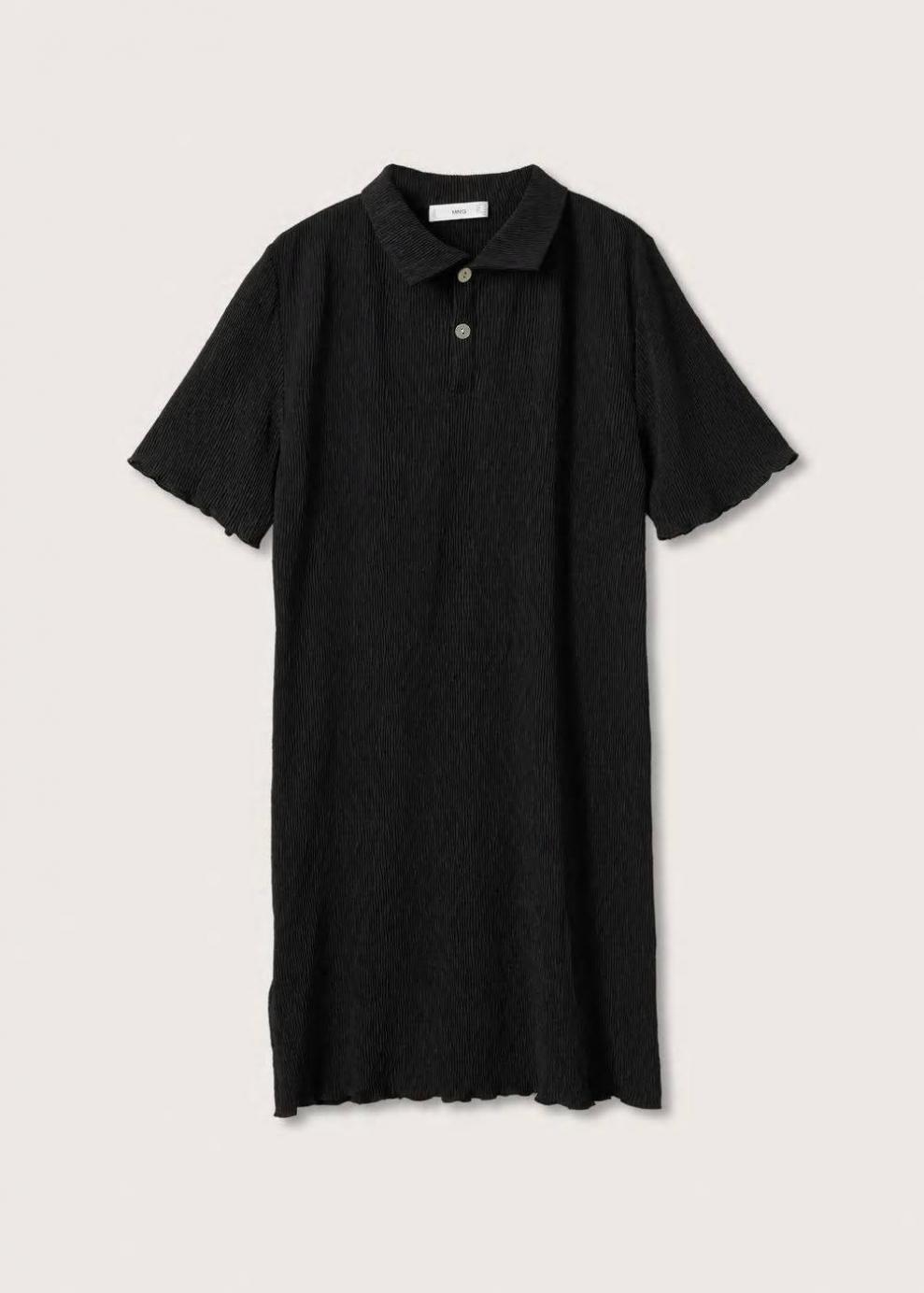 Tejido con textura Cuello redondo Tejido elástico Diseño recto Sin forro interior Sin cierre Diseño recto Diseño corto Manga corta Cuello camisero Cierre de botones en el cuello Terminaciones pespunteadas