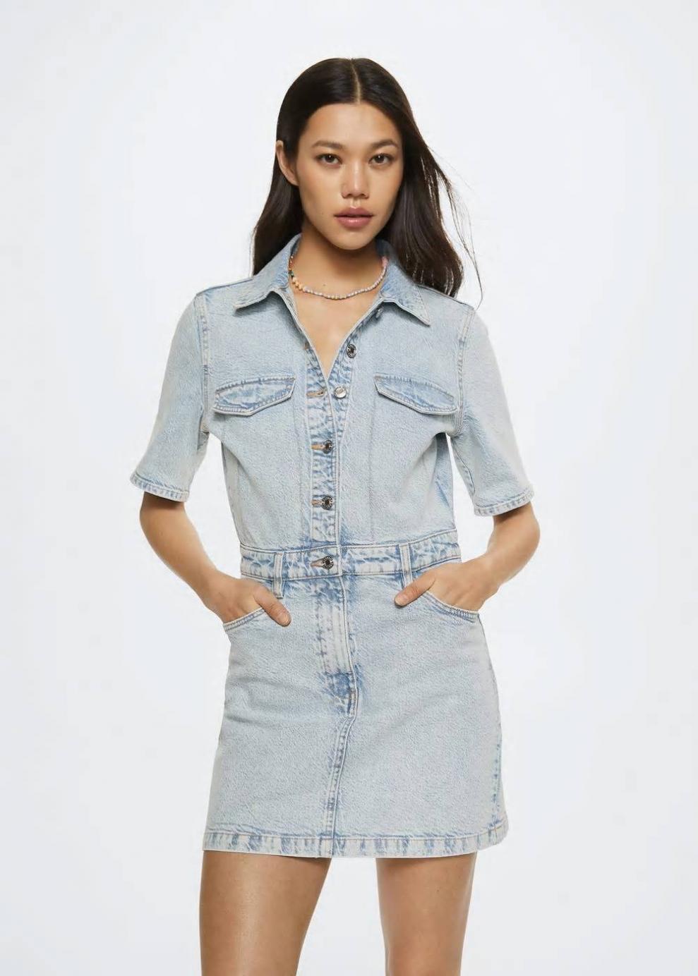 Colección Committed Tejido de algodón estilo tejano vaquero Diseño corto Diseño recto Cuello camisero Manga corta Trabillas Cinco bolsillos Bolsillos decorativos en la parte delantera Cierre de cremallera y botones Disponible Plus Las prendas etiquetadas como Committed son productos que han sido confeccionadas con fibras y/o procesos de producción sostenible, reduciendo así su impacto ambiental. El objetivo de Mango es respaldar la implementación de prácticas más comprometidas con el medio ambiente, aumentando así, el número de prendas sostenibles en su colección.