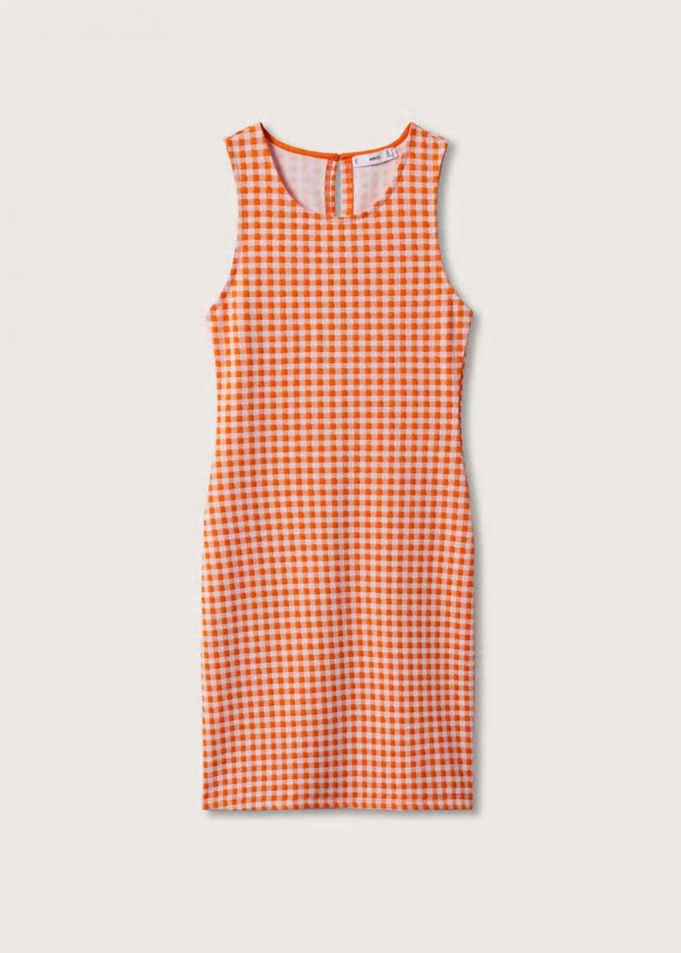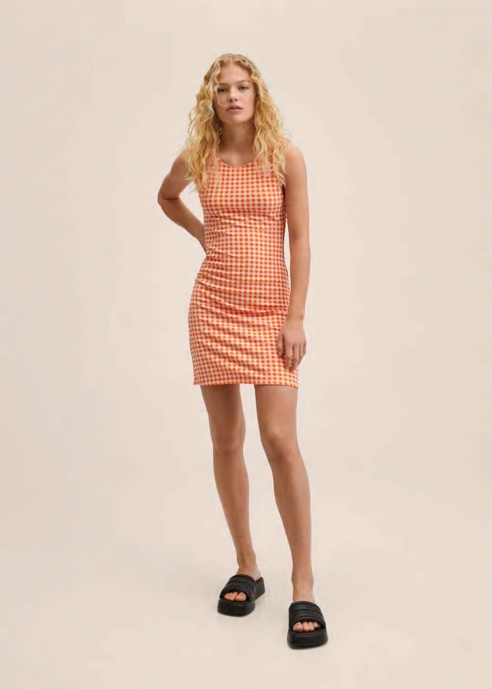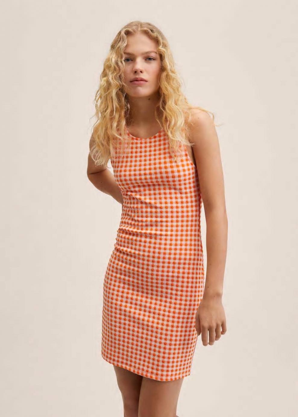 Colección Committed Premamá Tejido elástico Estampado de cuadros de vichy Diseño corto Diseño entallado Cuello redondo Sin mangas Cierre de botón en el cuello Las prendas etiquetadas como Committed son productos que han sido confeccionadas con fibras y/o procesos de producción sostenible, reduciendo así su impacto ambiental. El objetivo de Mango es respaldar la implementación de prácticas más comprometidas con el medio ambiente, aumentando así, el número de prendas sostenibles en su colección.