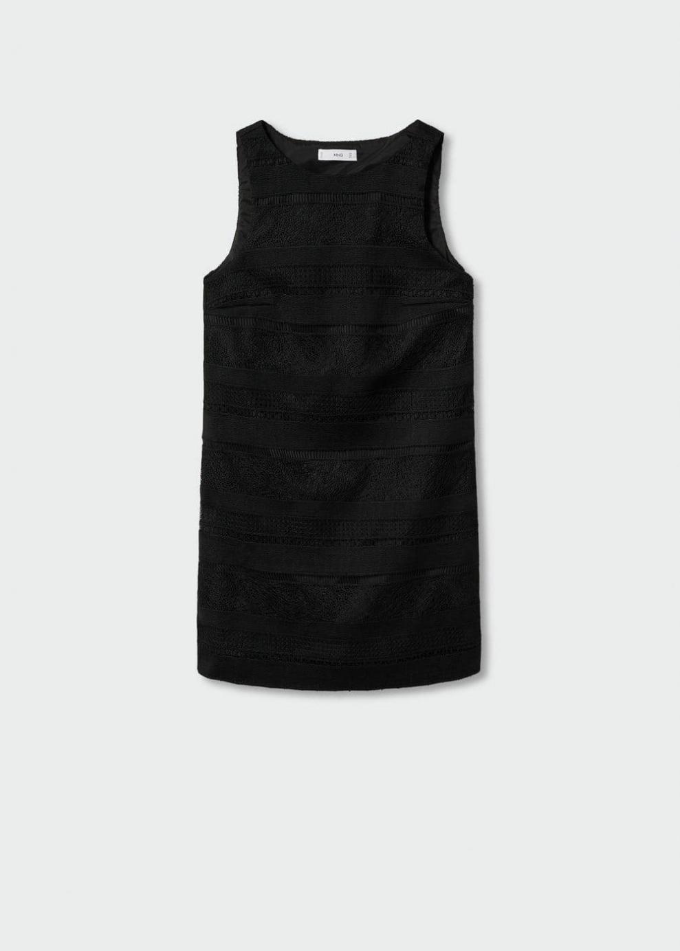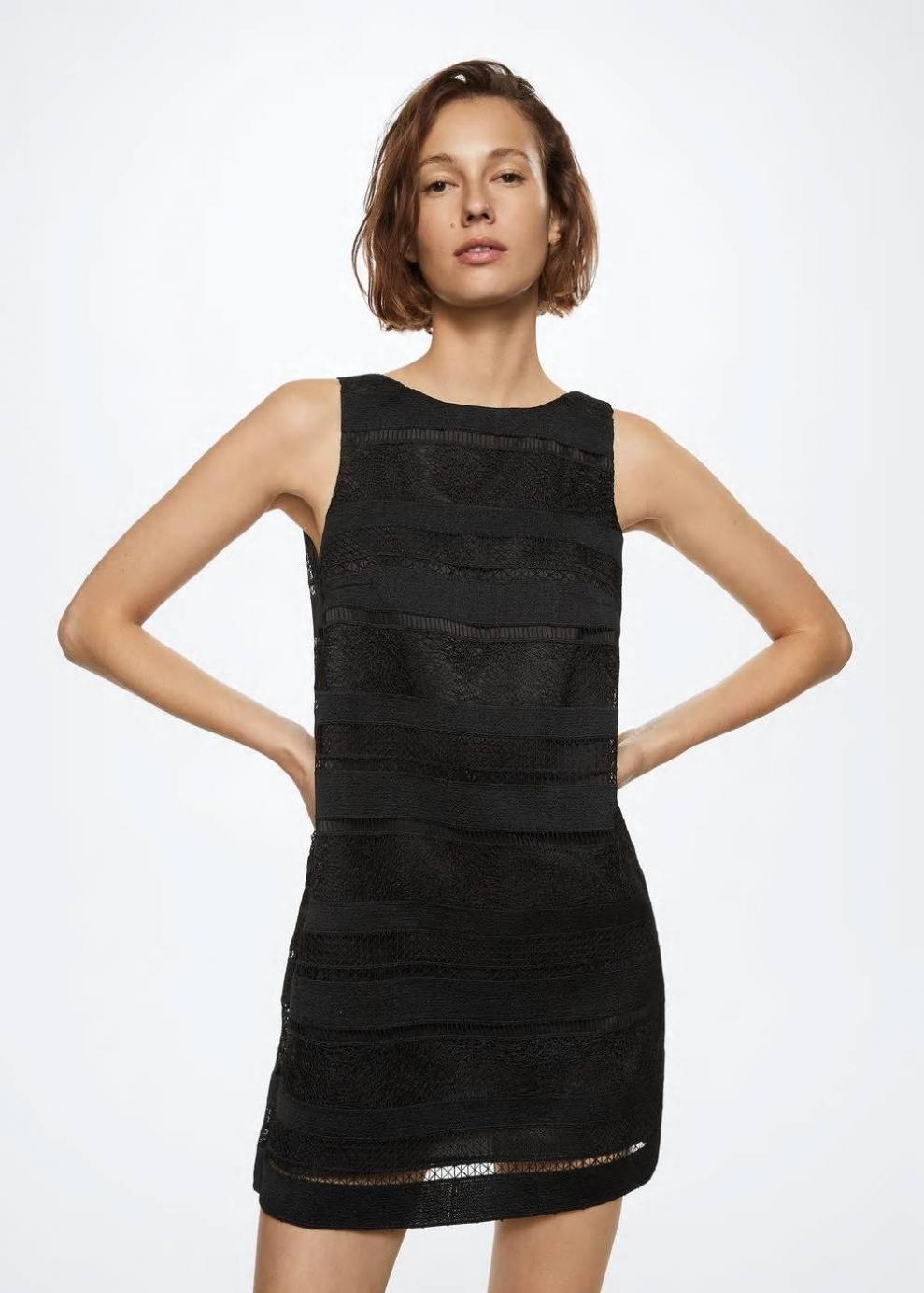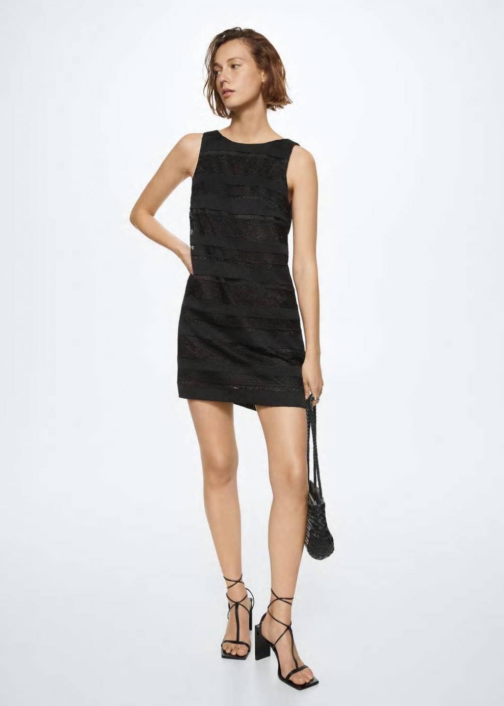 Tejido calado Tejido semitransparente Diseño recto Diseño corto Forro interior Cuello redondo Sin mangas Cierre lateral de cremallera Colección fiesta y ceremonia