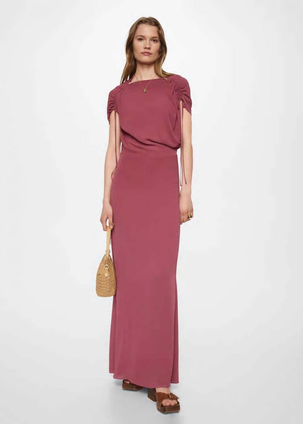 Colección Committed Tejido fluido Diseño evasé Diseño largo Detalles fruncidos Cuello redondo Manga corta Colección fiesta y ceremonia Las prendas etiquetadas como Committed son productos que han sido confeccionadas con fibras y/o procesos de producción sostenible, reduciendo así su impacto ambiental. El objetivo de Mango es respaldar la implementación de prácticas más comprometidas con el medio ambiente, aumentando así, el número de prendas sostenibles en su colección.