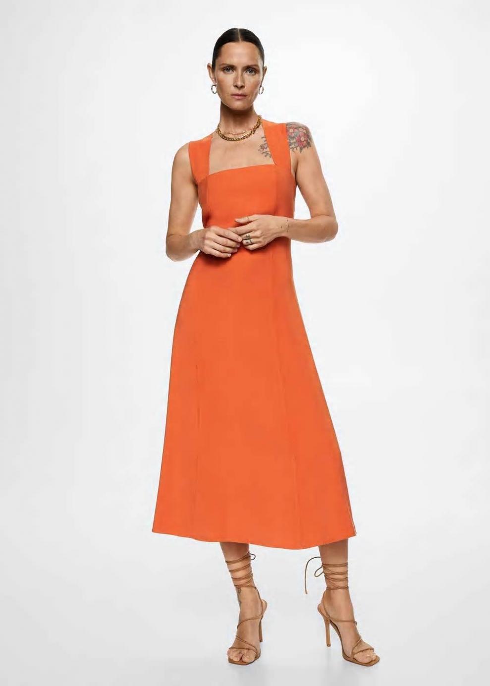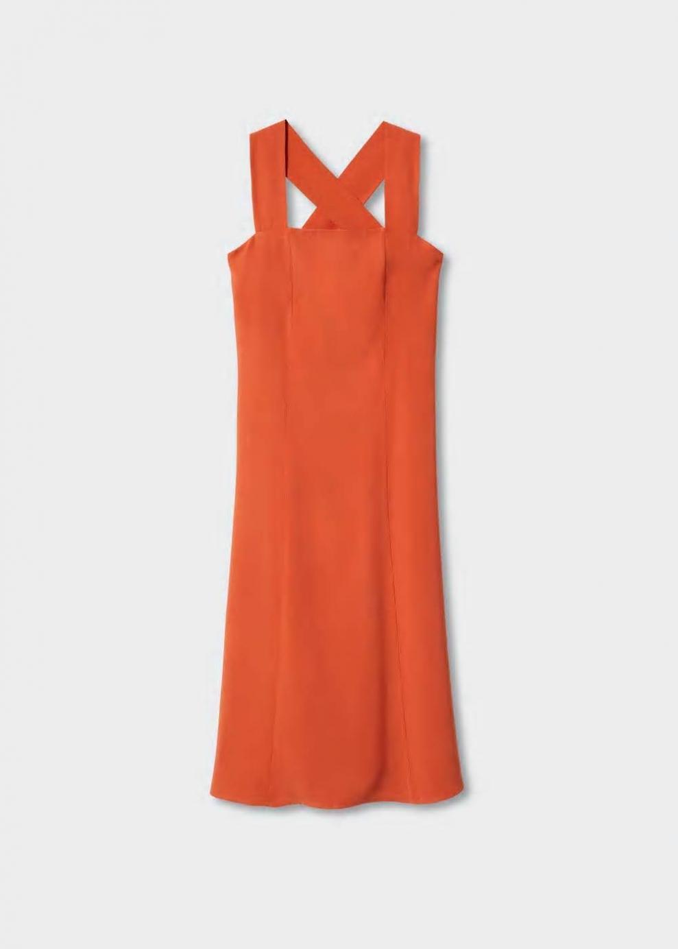 Colección Committed Tejido fluido Diseño largo Diseño evasé Cuello recto Tirantes anchos Tirantes cruzados en la espalda Forro interior Cierre de cremallera en la parte posterior Colección fiesta y ceremonia Las prendas etiquetadas como Committed son productos que han sido confeccionadas con fibras y/o procesos de producción sostenible, reduciendo así su impacto ambiental. El objetivo de Mango es respaldar la implementación de prácticas más comprometidas con el medio ambiente, aumentando así, el número de prendas sostenibles en su colección.
