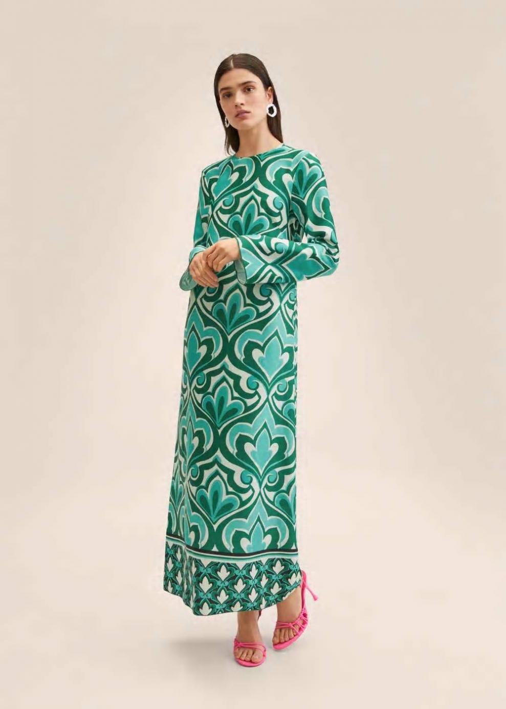 Mujer Vestido estampado abertura   Verde | Vestidos y monos Mango