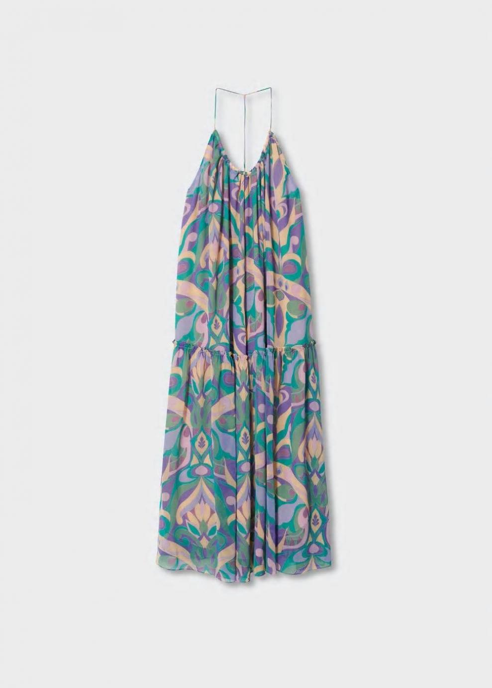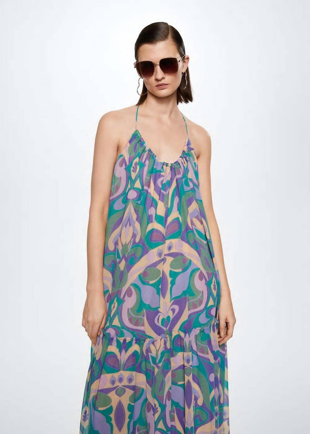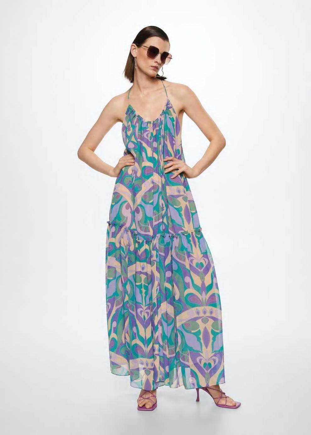 Colección Committed Estampado multicolor Diseño largo Diseño evasé Diseño maxi vestido Cuello escotado Tirantes finos cruzados Espalda abierta Sin mangas Detalle fruncido Detalle de volantes Forro interior Colección fiesta y ceremonia Las prendas etiquetadas como Committed son productos que han sido confeccionadas con fibras y/o procesos de producción sostenible, reduciendo así su impacto ambiental. El objetivo de Mango es respaldar la implementación de prácticas más comprometidas con el medio ambiente, aumentando así, el número de prendas sostenibles en su colección.