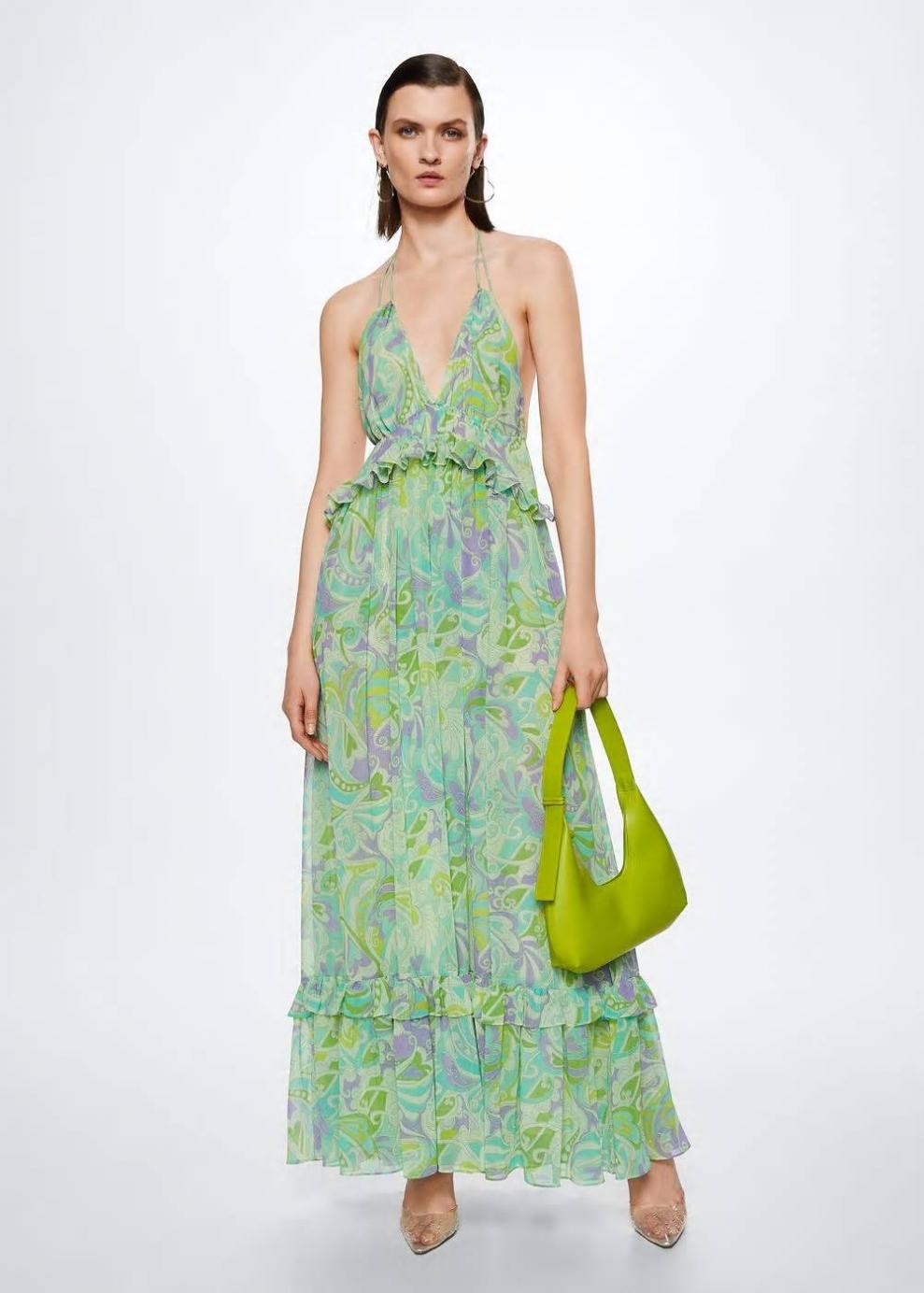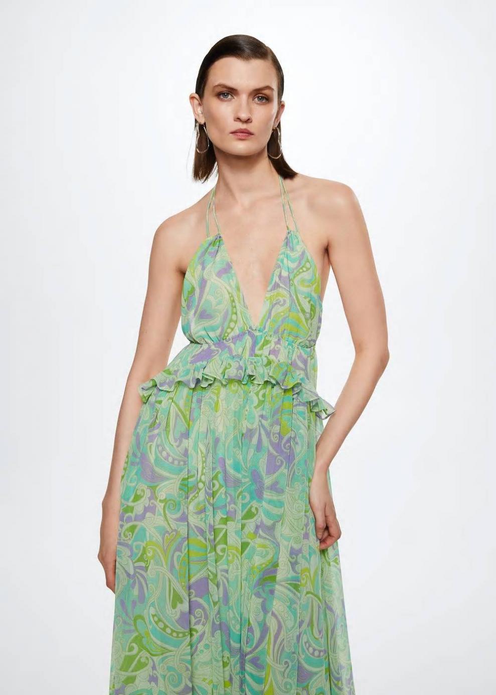 Colección Committed Estampado multicolor Diseño largo Diseño evasé Diseño maxi vestido Cuello escotado Tirantes finos Tirantes multiposición en la parte posterior Espalda abierta Detalle de volantes Forro interior Colección fiesta y ceremonia Las prendas etiquetadas como Committed son productos que han sido confeccionadas con fibras y/o procesos de producción sostenible, reduciendo así su impacto ambiental. El objetivo de Mango es respaldar la implementación de prácticas más comprometidas con el medio ambiente, aumentando así, el número de prendas sostenibles en su colección.