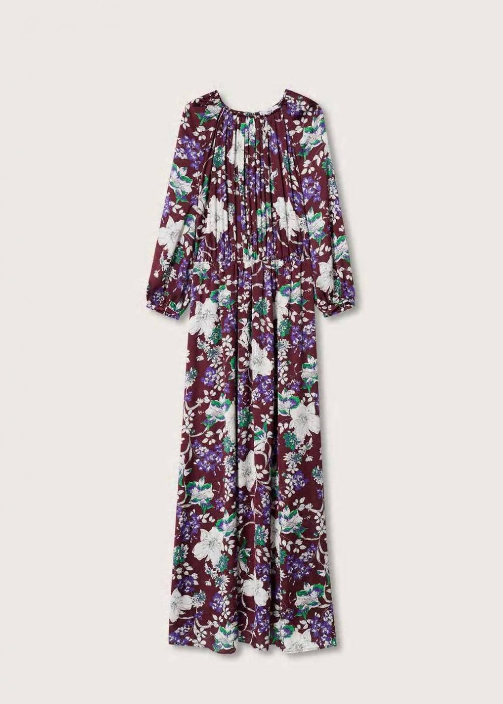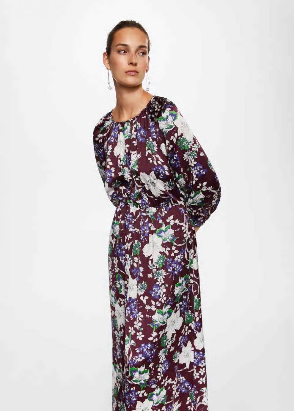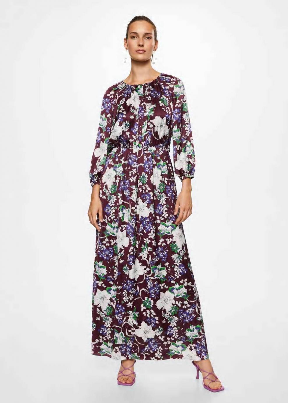 Colección Committed Tejido fluido Diseño largo Diseño maxi vestido Estampado de flores Cuello redondo Manga larga con puños elásticos Colección fiesta y ceremonia Las prendas etiquetadas como Committed son productos que han sido confeccionadas con fibras y/o procesos de producción sostenible, reduciendo así su impacto ambiental. El objetivo de Mango es respaldar la implementación de prácticas más comprometidas con el medio ambiente, aumentando así, el número de prendas sostenibles en su colección.