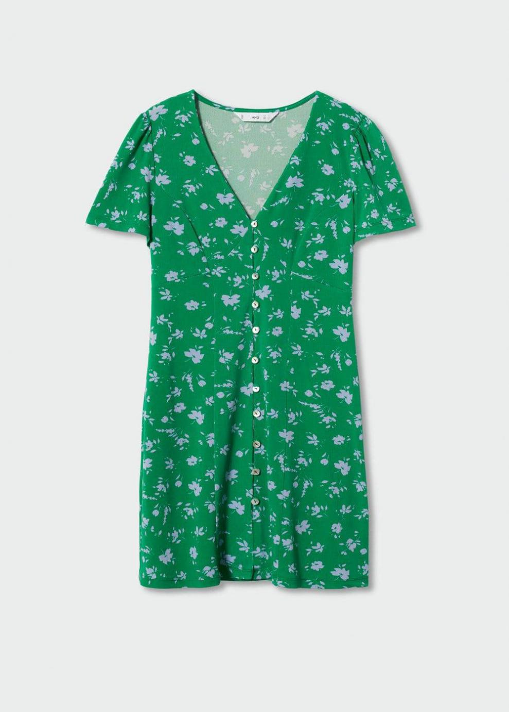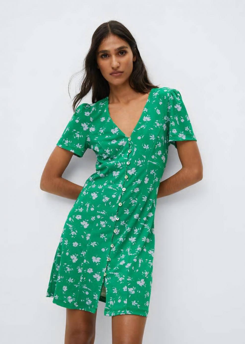 Estampado de flores Diseño corto Diseño evasé Cuello pico Manga corta Cierre de botones en la parte delantera Disponible Plus