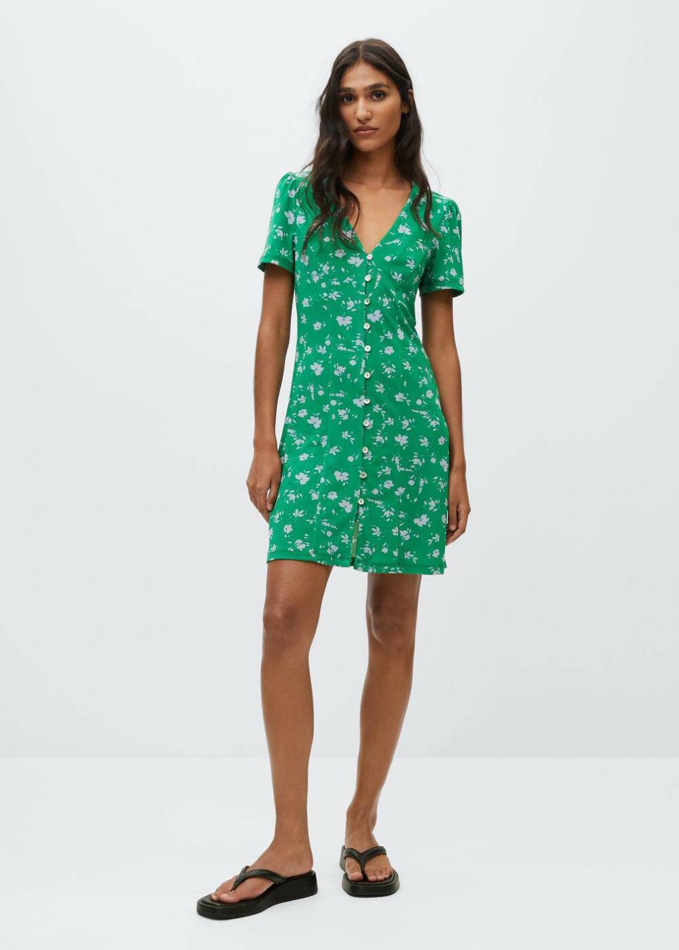 Estampado de flores Diseño corto Diseño evasé Cuello pico Manga corta Cierre de botones en la parte delantera Disponible Plus…
