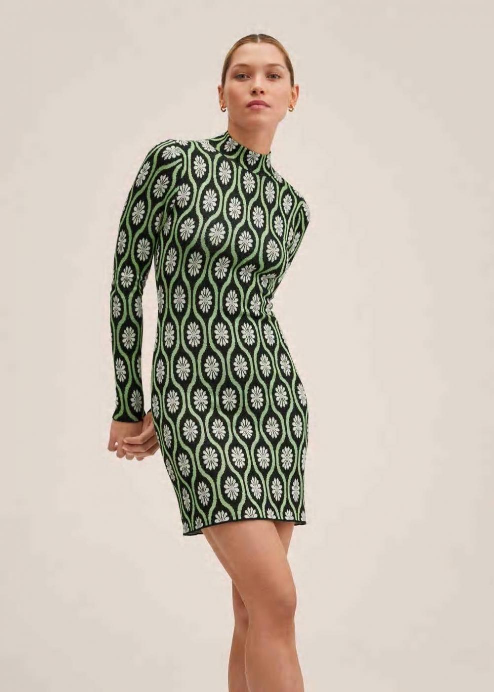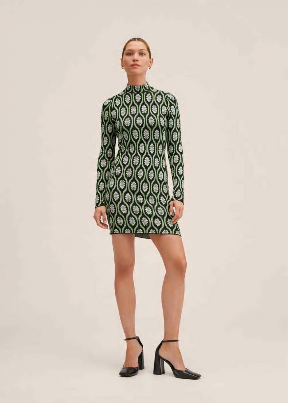 Tejido con algodón Cierre trasero Sin forro interior Tamaño mini Espalda abierta Slim fit Tejido de punto fino Estampado retro Diseño recto Diseño corto Cuello perkins Manga larga Abertura en la espalda con cierre de botón Exclusivo Online