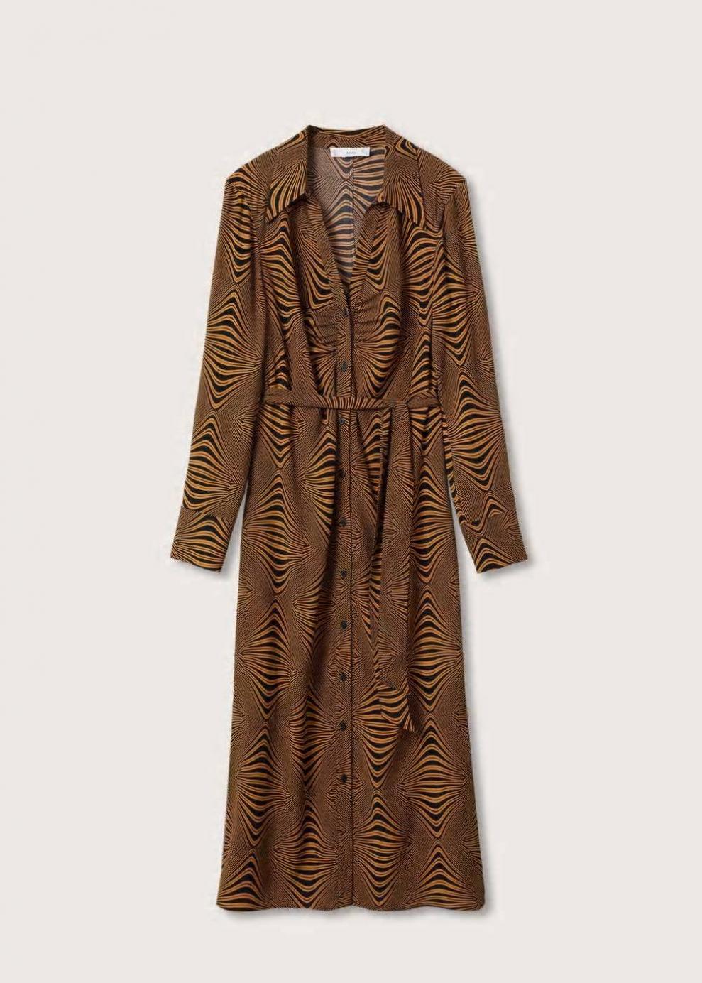 Manga larga Tejido fluido Tejido ligero Cierre delantero Sin forro interior Diseño largo Diseño evasé Estampado animal print Cuello camisero Manga larga con puños abotonados Lazo ajustable en la cintura Aberturas en el bajo Cierre de botones en la parte delantera Disponible Plus Las prendas etiquetadas como Committed son productos que han sido confeccionadas con fibras y/o procesos de producción sostenible, reduciendo así su impacto ambiental. El objetivo de Mango es respaldar la implementación de prácticas más comprometidas con el medio ambiente, aumentando así, el número de prendas sostenibles en su colección.