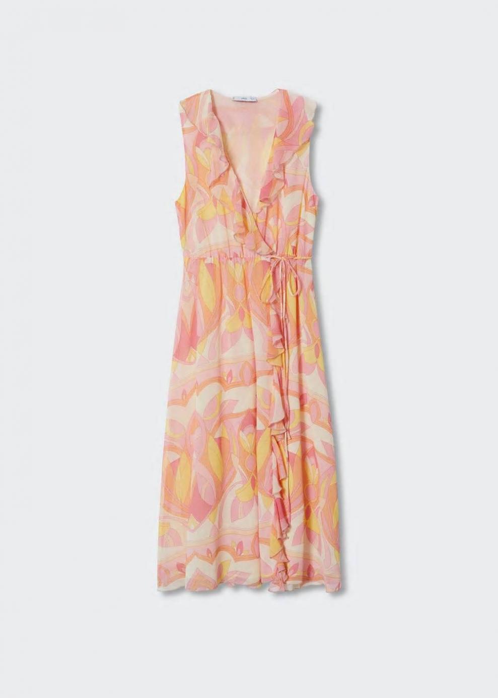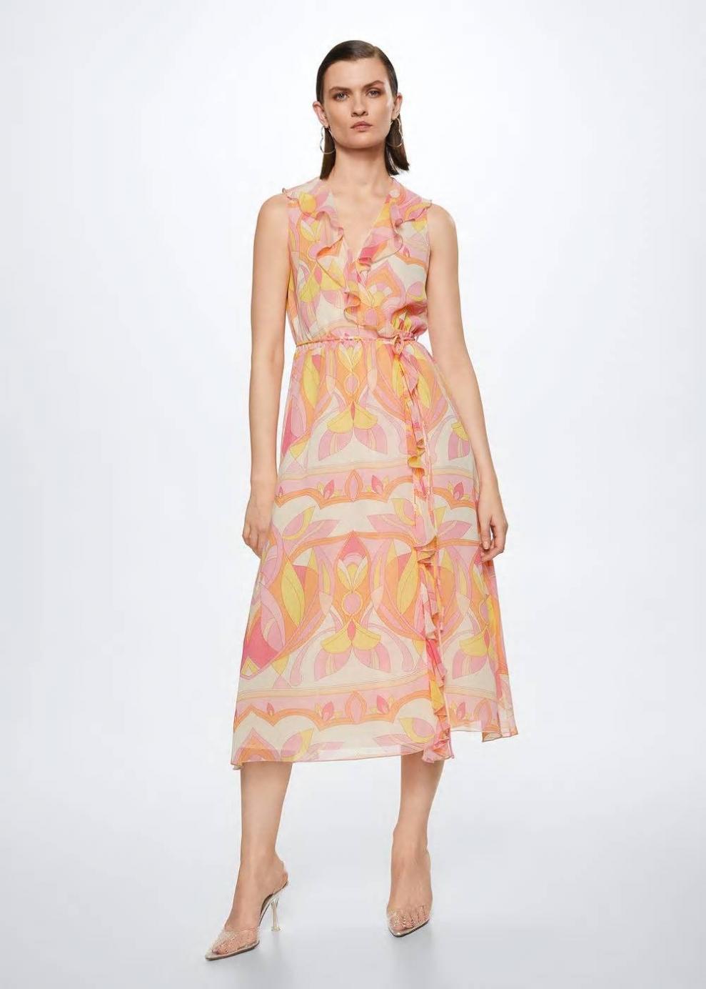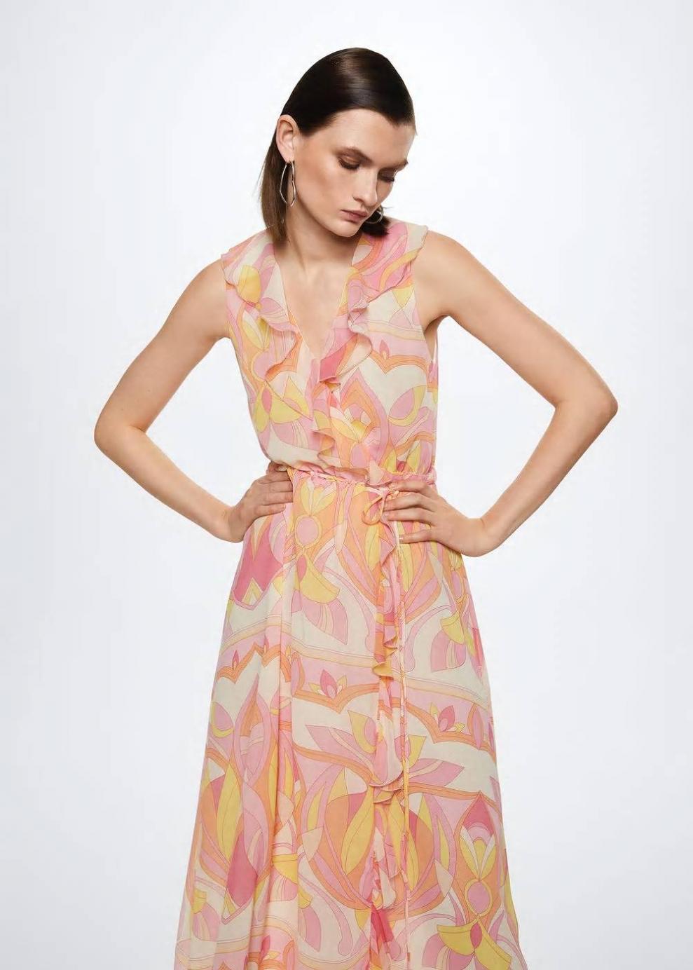 Colección Committed Estampado multicolor Diseño midi Diseño evasé Cuello cruzado Sin mangas Detalle de volantes Forro interior Cierre de lazo lateral Colección fiesta y ceremonia Las prendas etiquetadas como Committed son productos que han sido confeccionadas con fibras y/o procesos de producción sostenible, reduciendo así su impacto ambiental. El objetivo de Mango es respaldar la implementación de prácticas más comprometidas con el medio ambiente, aumentando así, el número de prendas sostenibles en su colección.