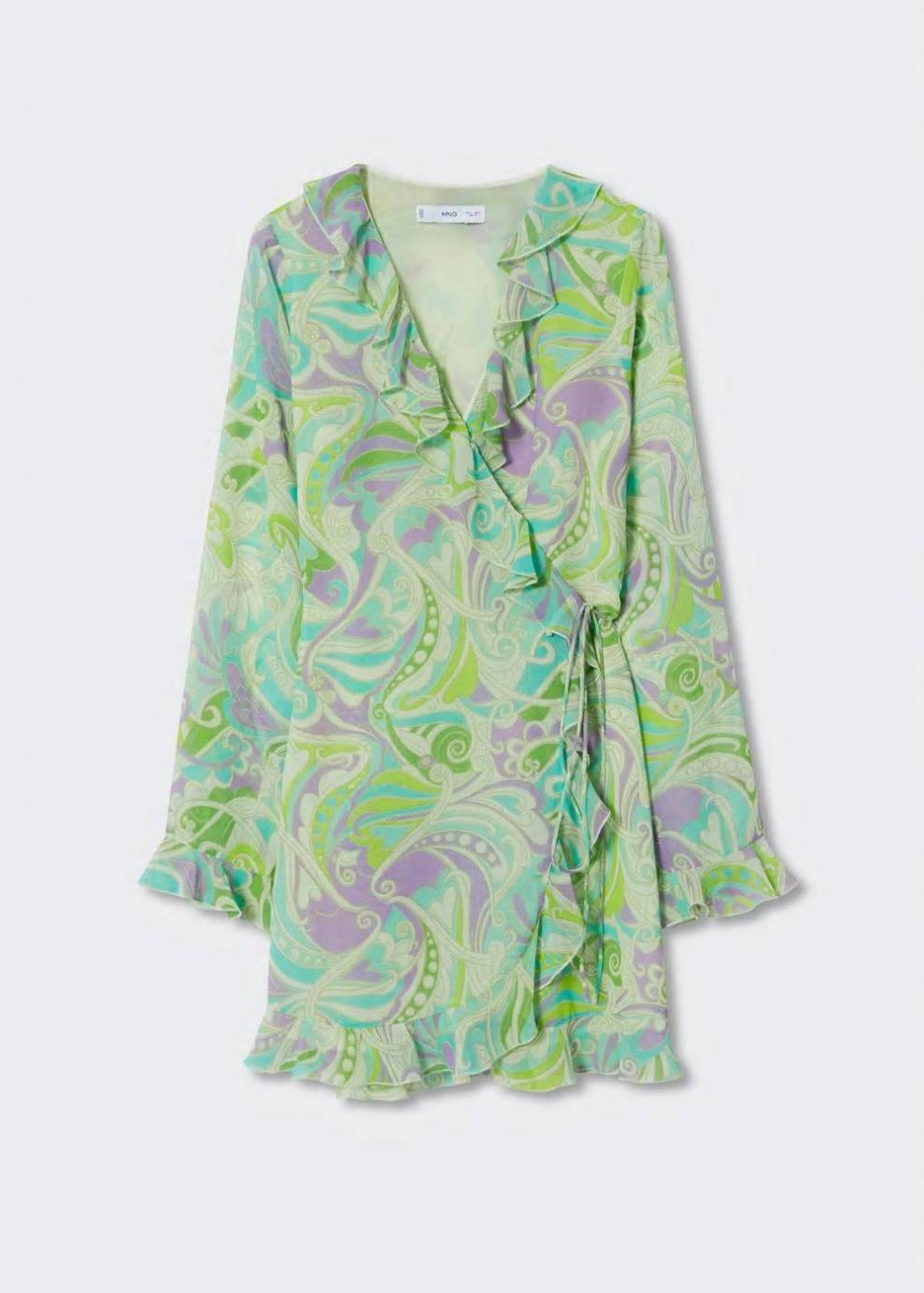 Colección Committed Estampado multicolor Diseño corto Diseño evasé Cuello cruzado Manga larga Volantes decorativos Forro interior Cierre de lazo lateral Colección fiesta y ceremonia Las prendas etiquetadas como Committed son productos que han sido confeccionadas con fibras y/o procesos de producción sostenible, reduciendo así su impacto ambiental. El objetivo de Mango es respaldar la implementación de prácticas más comprometidas con el medio ambiente, aumentando así, el número de prendas sostenibles en su colección.